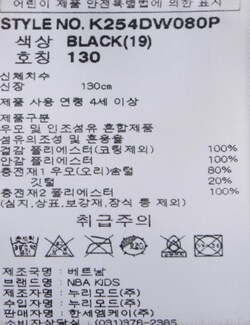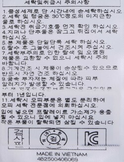 | 세탁방법 및 취급시 주의사항 | 본 제품은 손세탁 하십시오.(케어라벨참고) |