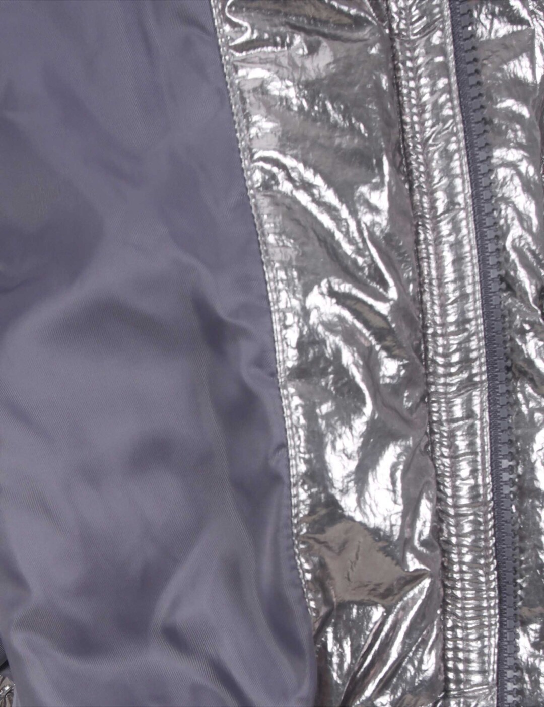 *트렌디한 글로시한 소재가 시선을 강탈 하고, 오버핏 실루엣과 변형 사시선이 스트리트 무드와 편안한 착용감을 동시 제공.