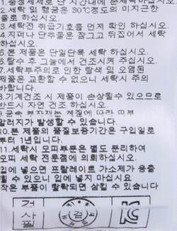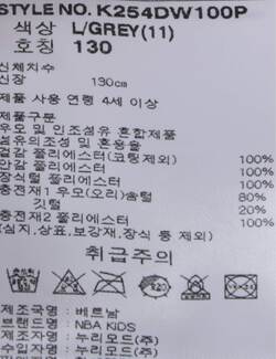 | 세탁방법 및 취급시 주의사항 | 본 제품은 손세탁 하십시오.(케어라벨참고) |