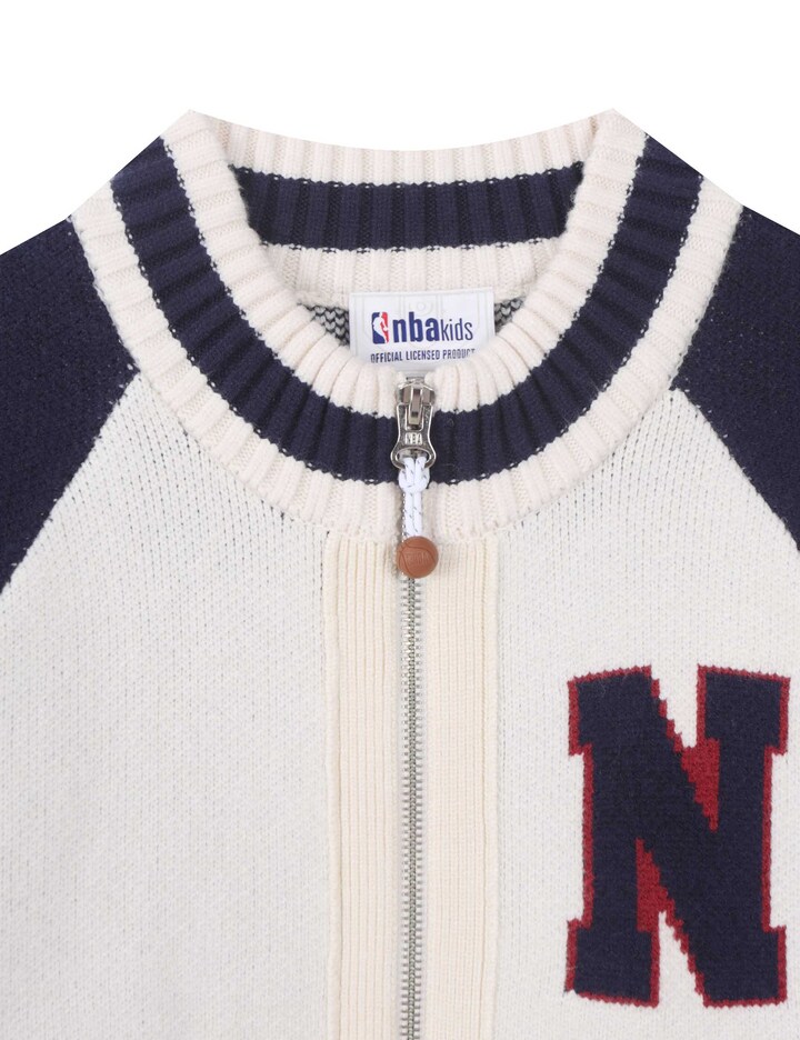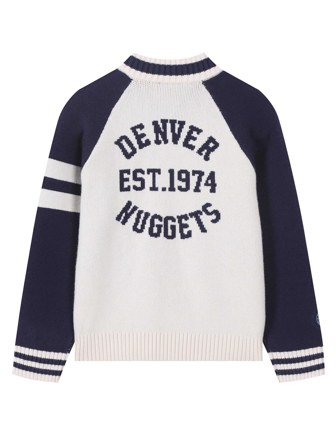 *배색라글란 소매와, 스트라이프 포인트 넥, 소매등으로 컬러 포인트를 주고. 앞 알파켓 자가드, 뒤 라운드 팀 자가드를 사용하여 팀 아이덴티티를 살려준 스타일
