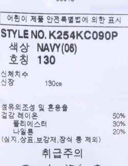 | 세탁방법 및 취급시 주의사항 | 본 제품은 반드시 드라이크리닝 하십시오.(세탁라벨참고) |