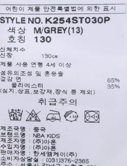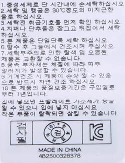 | 세탁방법 및 취급시 주의사항 | 본 제품은 손세탁 하십시오.(케어라벨참고) |