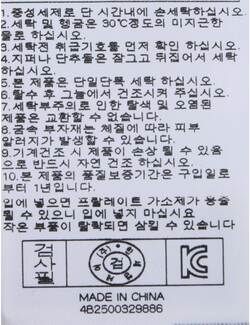 세탁방법 및 취급시 주의사항 본 제품은 손세탁 하십시오.(케어라벨참고)