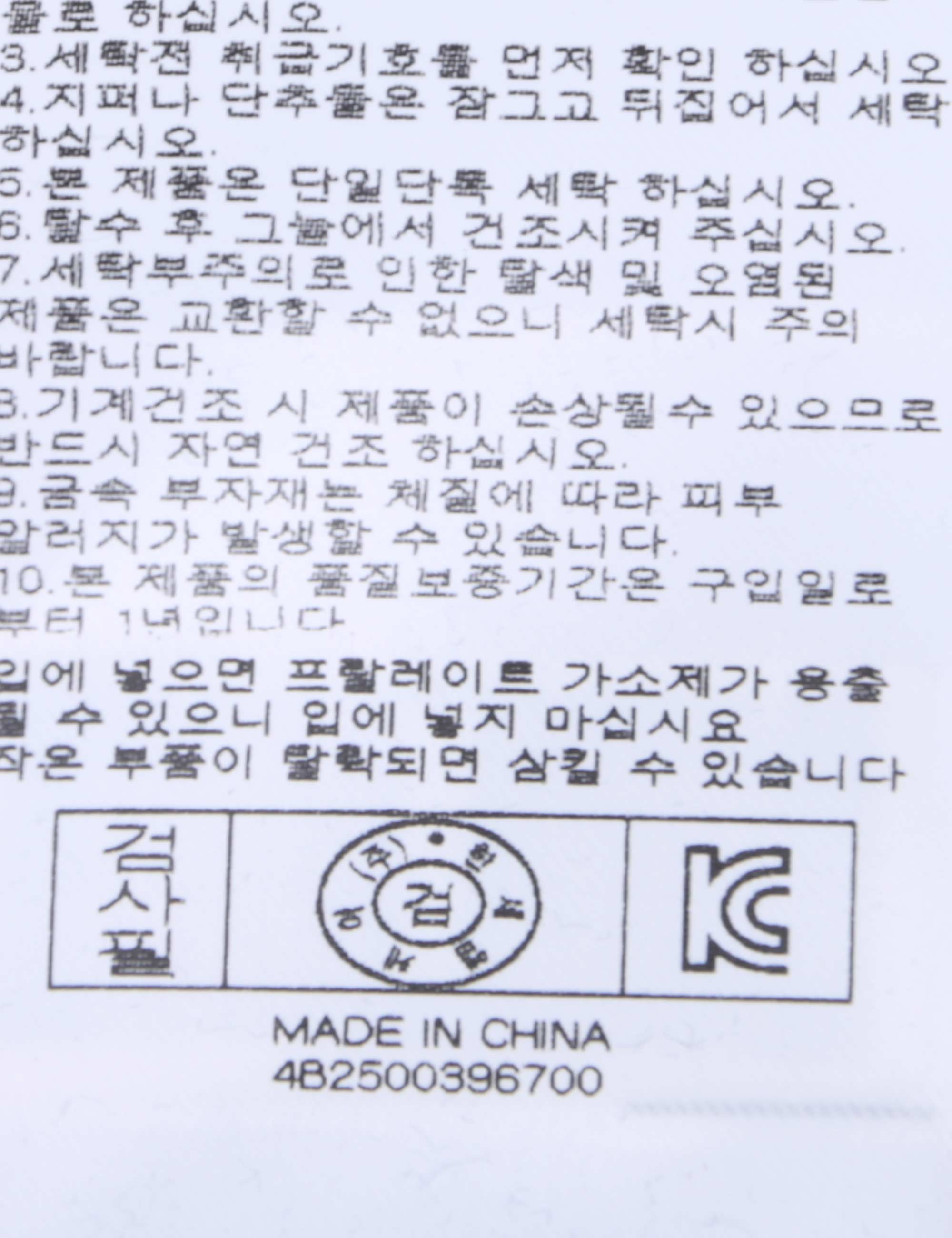 세탁방법 및 취급시 주의사항 중성세제로 단 시간내에 세탁하십시오.(케어라벨참고)