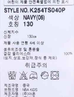 상품명 NBA 플리스 맨투맨(K254TS040P)