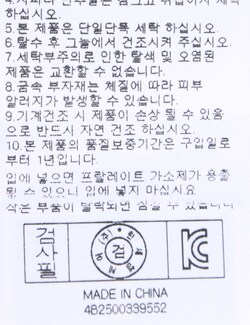 해당 인증정보는 판매자가 등록한 것으로 등록정보에 대한 일체의 책임은 판매자에게 있습니다.