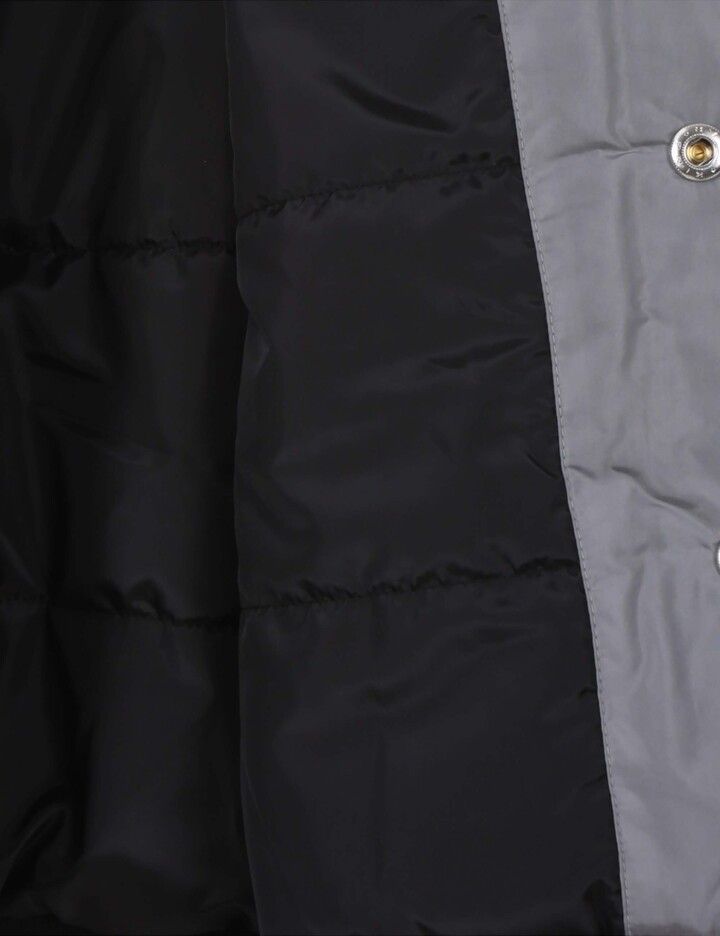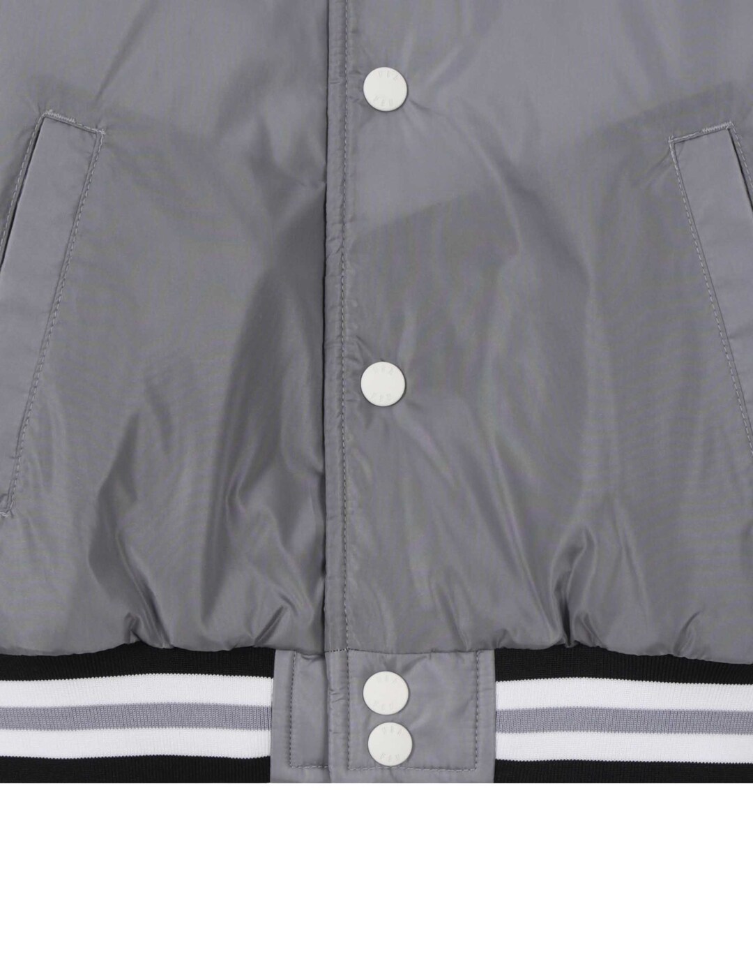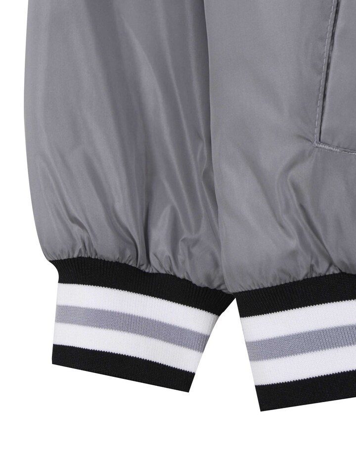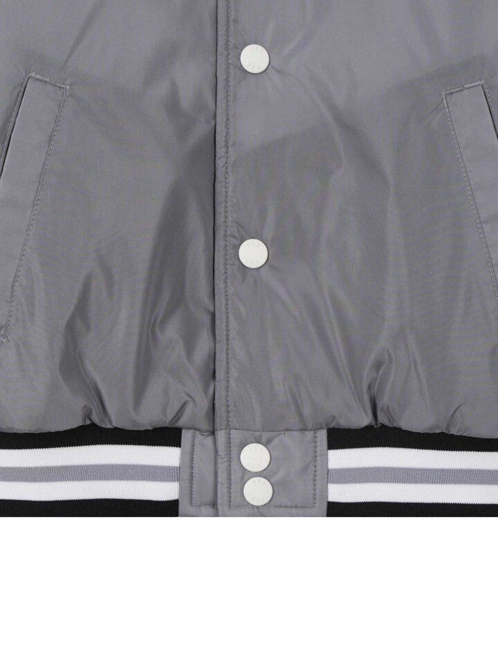 [디자인 및 스타일]: 나일론 소재의 후드 부착형 패딩 바시티형 점퍼로, 간절기 시즌에 입기 좋은 형태입니다. 스포티한 캠퍼스 자켓 스타일로 디자인되어 깔끔하면서도 활동적인 느낌을 줍니다.