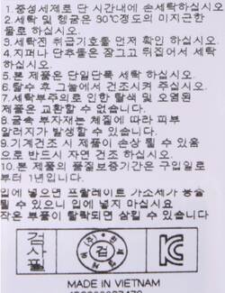 | 세탁방법 및 취급시 주의사항 |