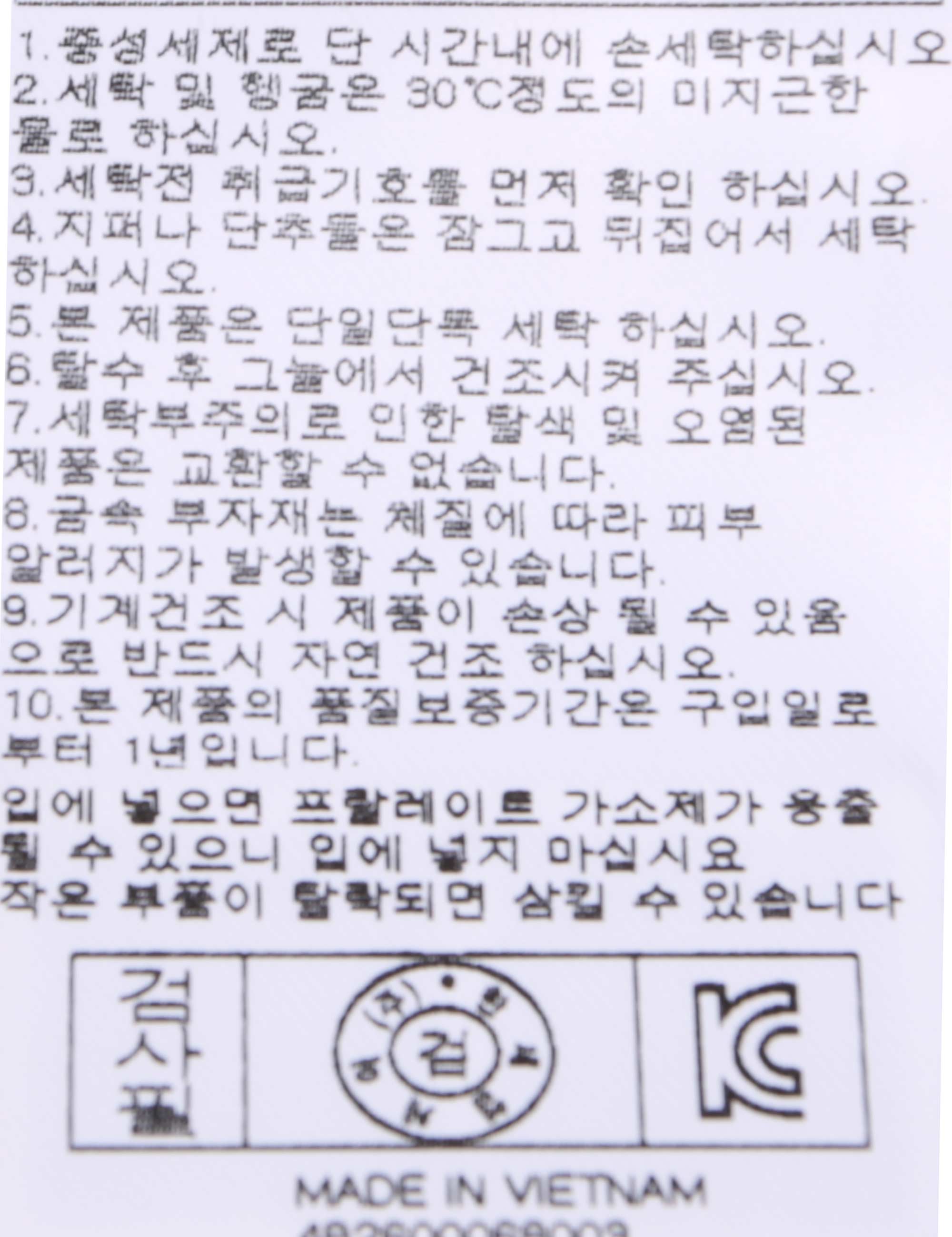 세탁방법 및 취급시 주의사항 본 제품은 손세탁 하십시오.(케어라벨참고)