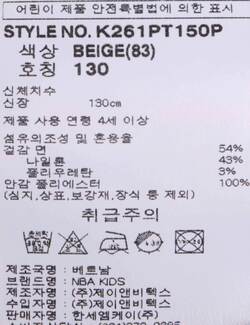 [겉감]면54% 나일론43% 폴리우레탄3% [안감]폴리에스터100% |