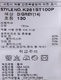 후드베스트[겉감]면80% 폴리에스터20% [안감]면70% 폴리에스터30% 티셔츠[겉감]면70% 폴리에스터30% 바지[겉감]면80% 폴리에스터20% |
