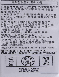 본 제품은 손세탁 하십시오.(케어라벨참고) |