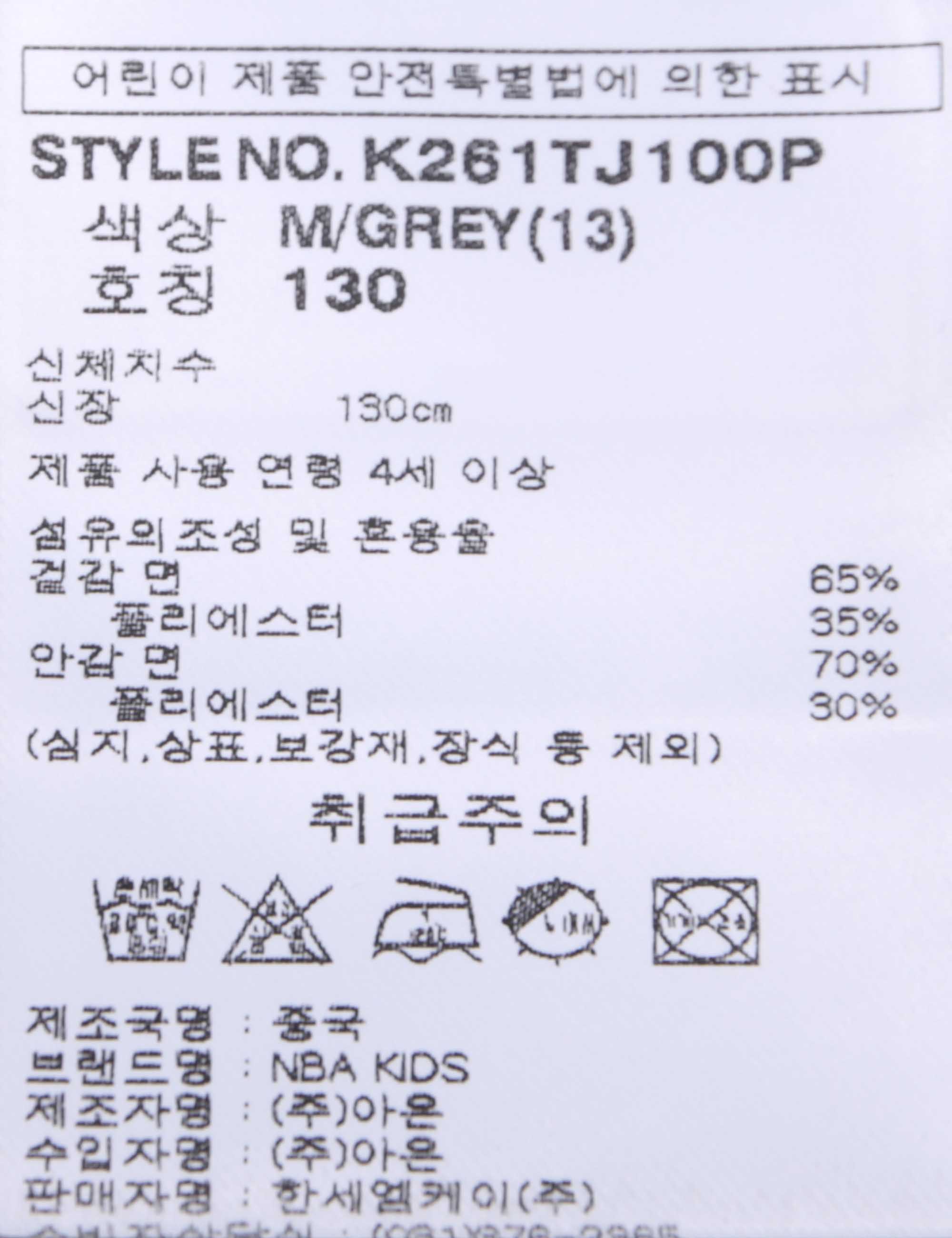 | 상품명 | NBA키즈 후드집업(K261TJ100P) |