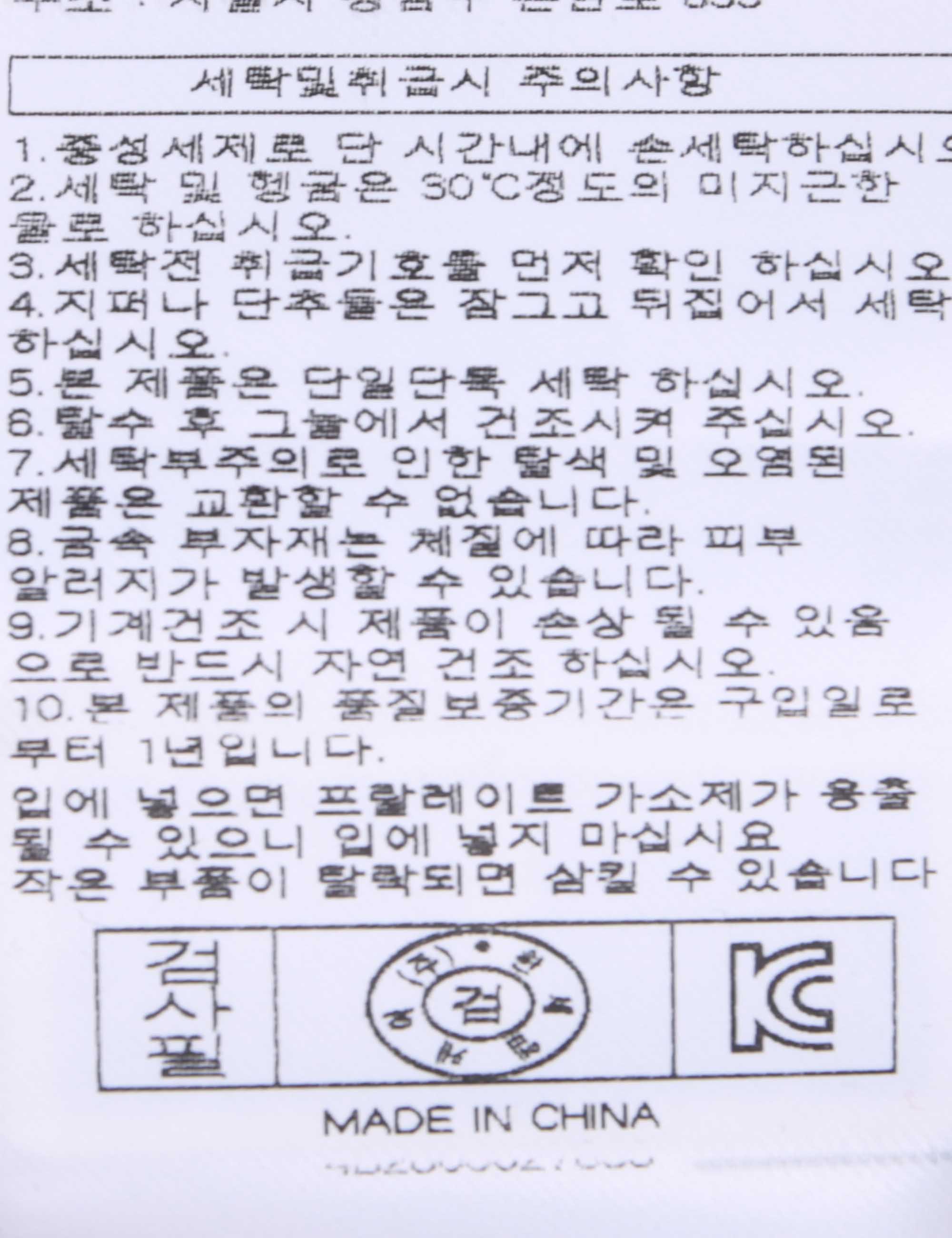 | 세탁방법 및 취급시 주의사항 | 본 제품은 손세탁 하십시오.(케어라벨참고) |