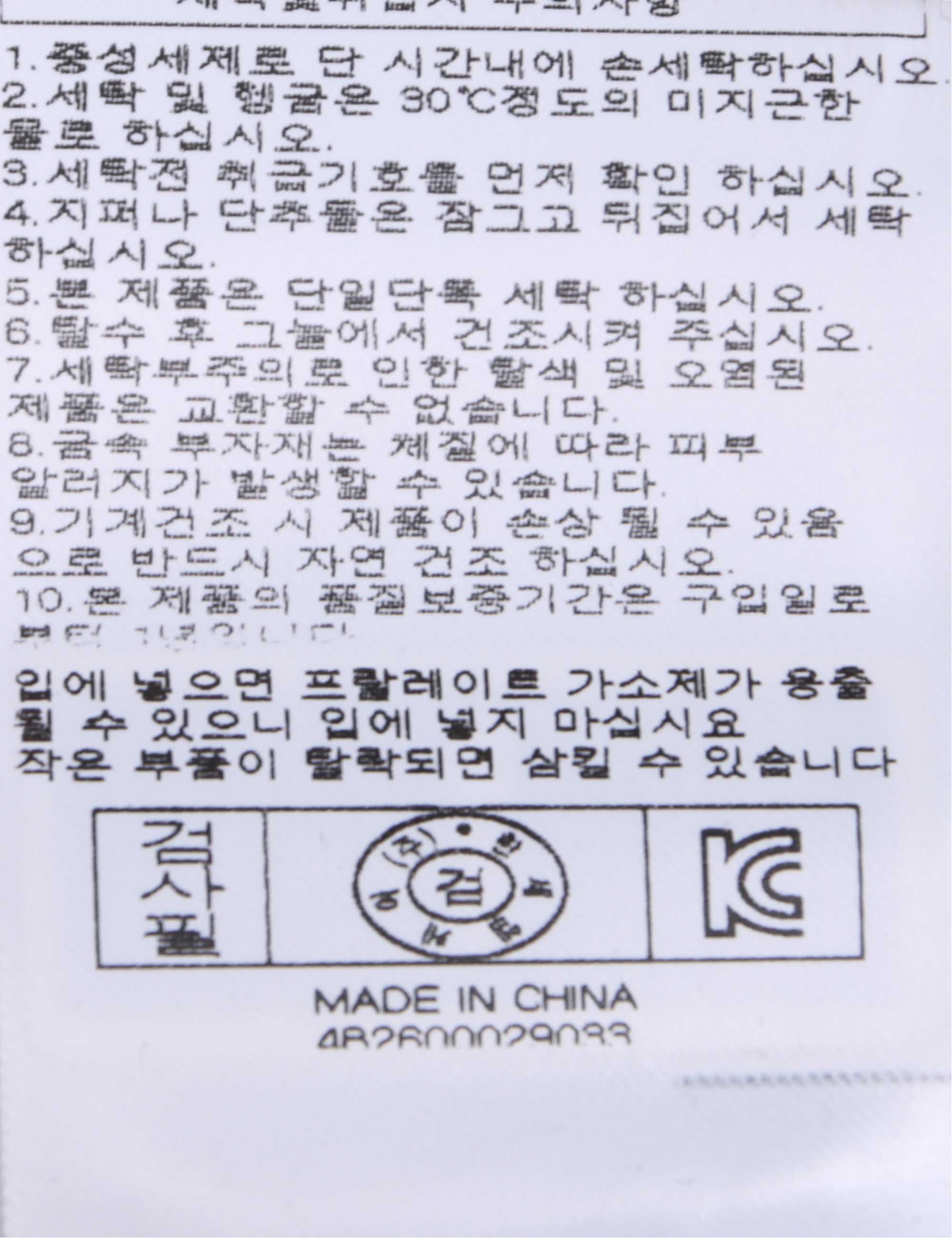 세탁방법 및 취급시 주의사항 본 제품은 손세탁 하십시오.(케어라벨참고)