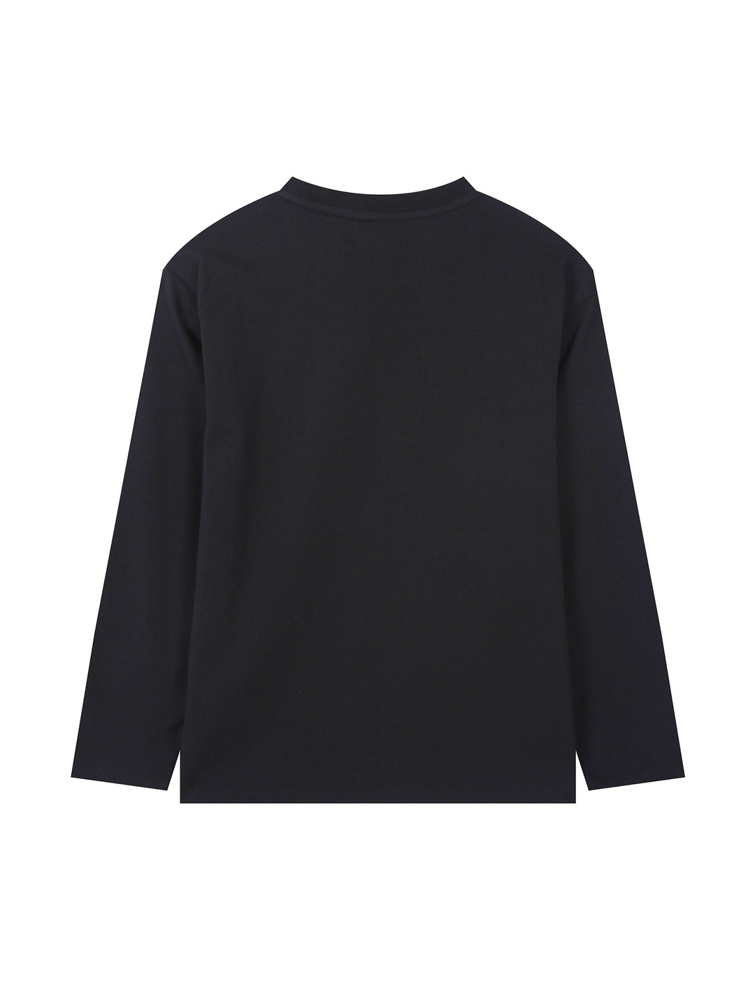 [디자인 포인트] 앞 가슴 양쪽에 숫자 그래픽과 팀 로고가 나염 포인트로 들어간 싱글 긴팔 티셔츠입니다. 과하지 않으면서도 스포티한 디테일이 살아있는 것이 특징입니다.