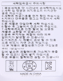 세탁방법 및 취급시 주의사항 본 제품은 손세탁 하십시오.(케어라벨참고)