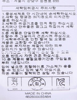 세탁방법 및 취급시 주의사항 본 제품은 손세탁 하십시오.(케어라벨참고)