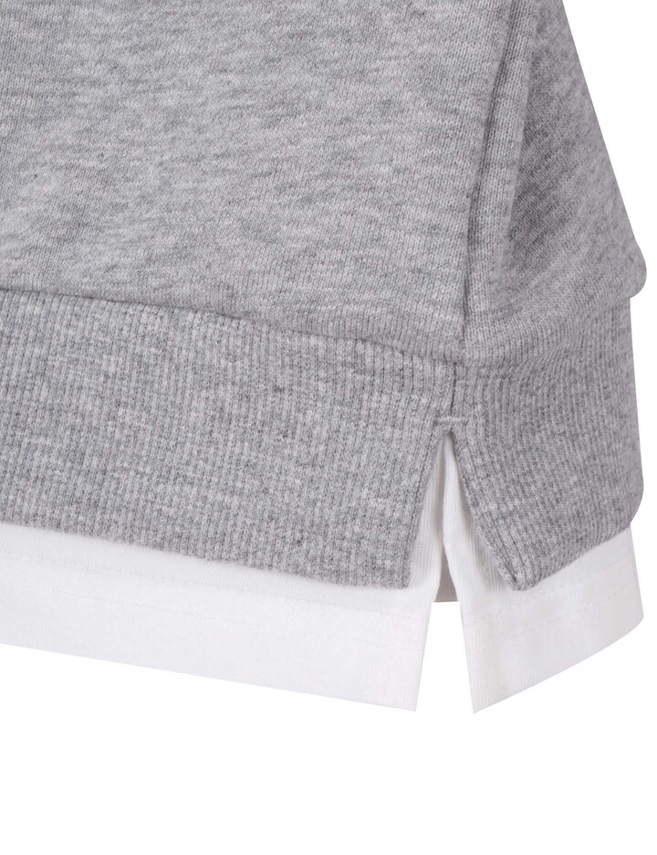 A: 본 제품은 밑단에 배색을 덧대어 레이어드 효과를 준 일체형 디자인으로, 한 벌만으로 간편하게 레이어드 스타일을 연출할 수 있습니다.