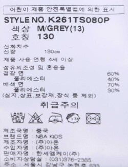 [겉감]면60% 폴리에스터40% [배색]면70% 폴리에스터30% |