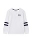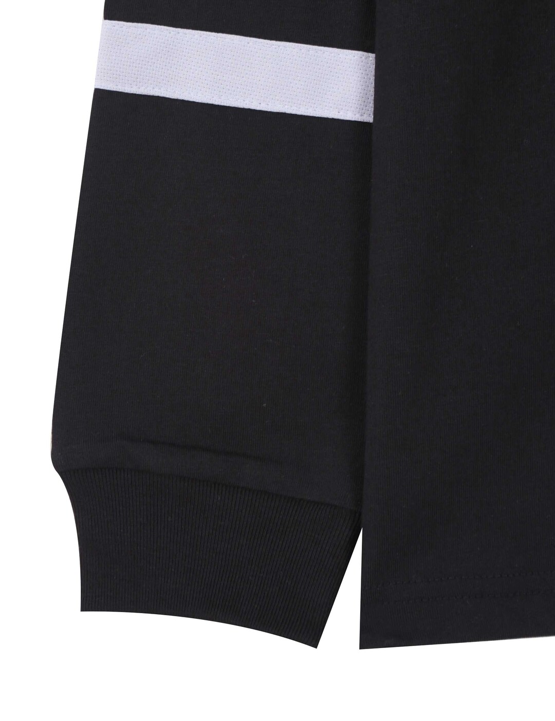 [디자인 및 무드] 소매의 2줄 배색 디테일을 적용하여 스포티한 느낌을 살린 싱글 긴팔 티셔츠입니다. 기본 로고체와 소매 배색, 그리고 등판 그래픽이 조화를 이뤄 활동적인 무드를 완성합니다.