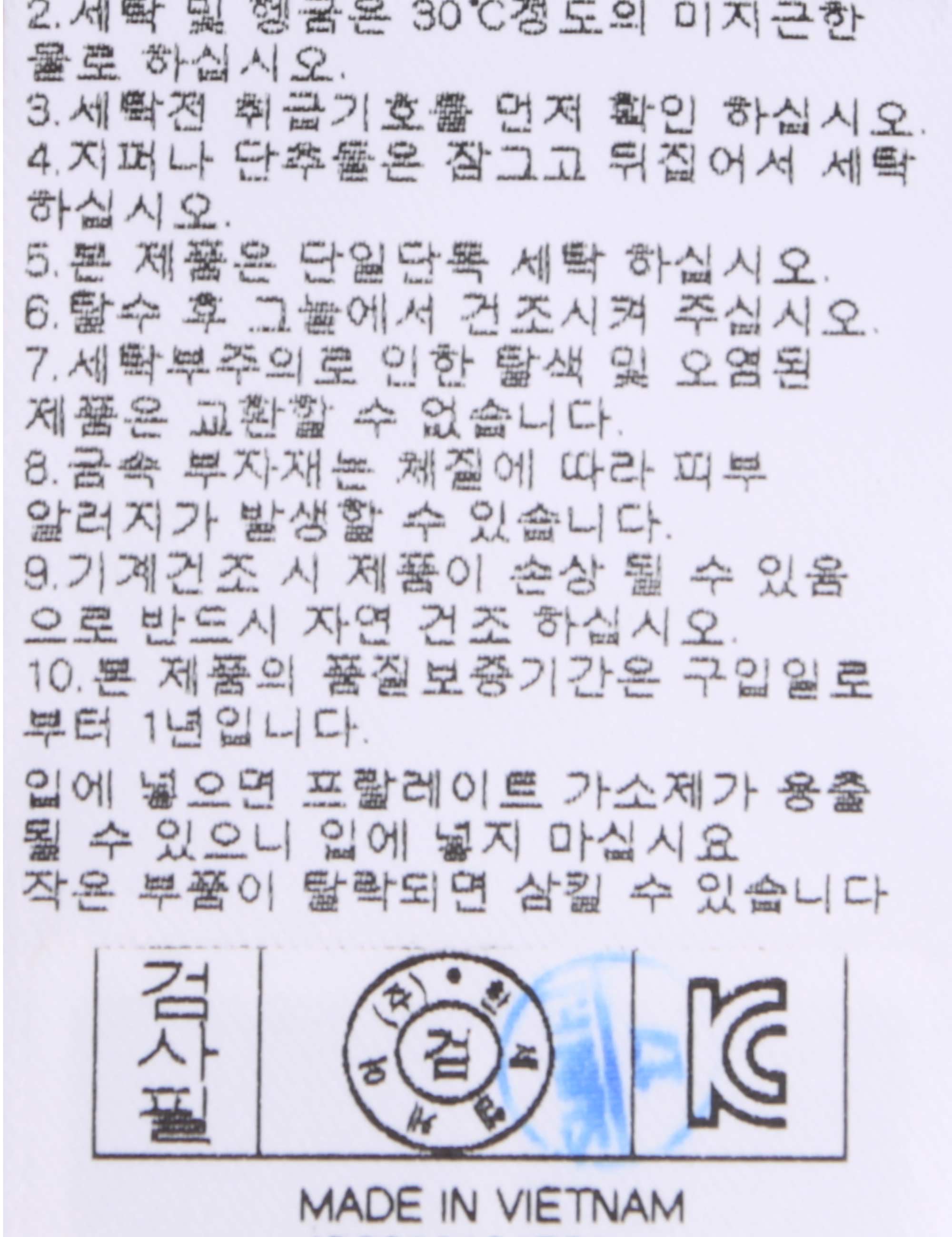 | 세탁방법 및 취급시 주의사항 | 본 제품은 손세탁 하십시오.(케어라벨참고) |