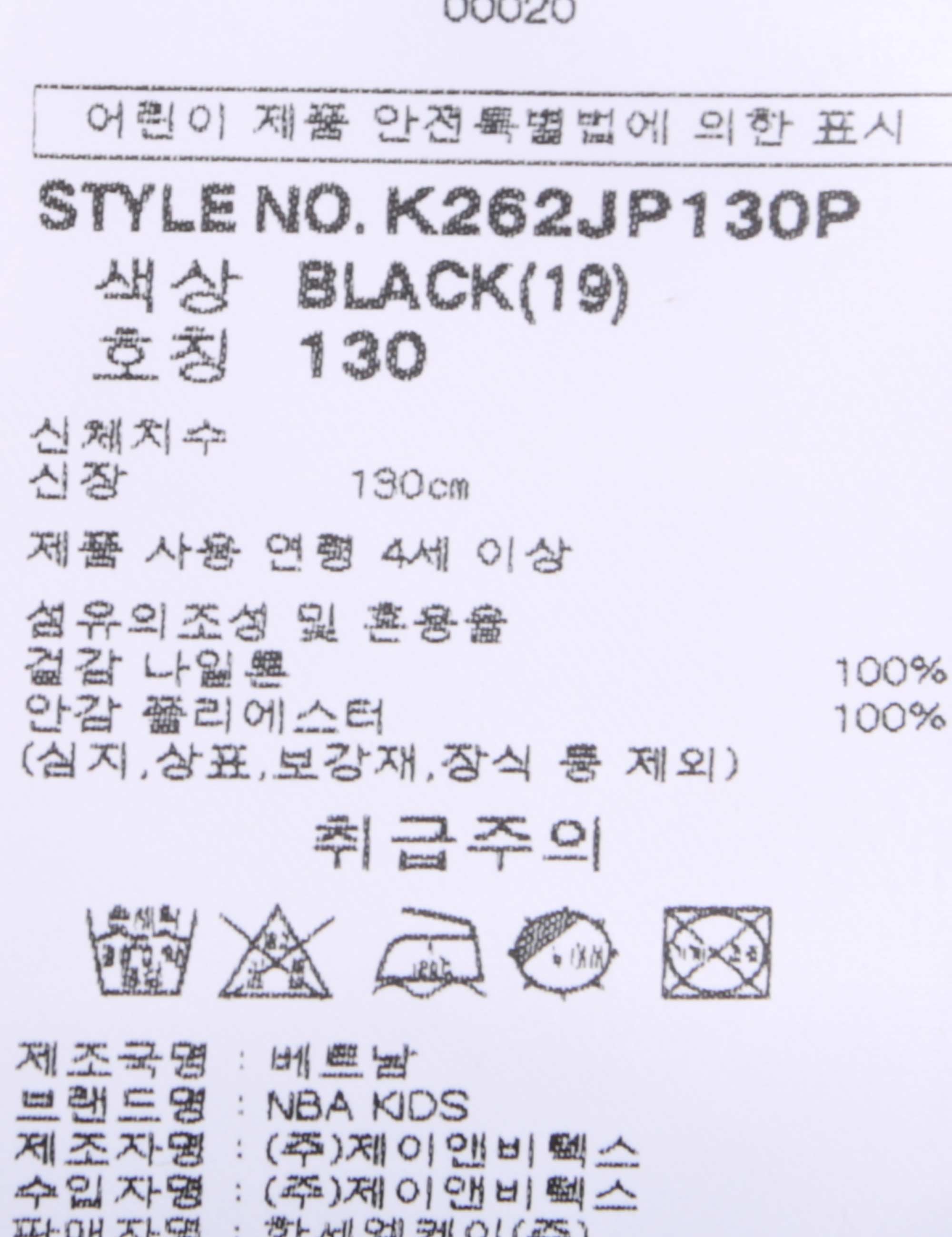 상품명 NBA키즈 루즈핏 3M로고 포인트 바람막이