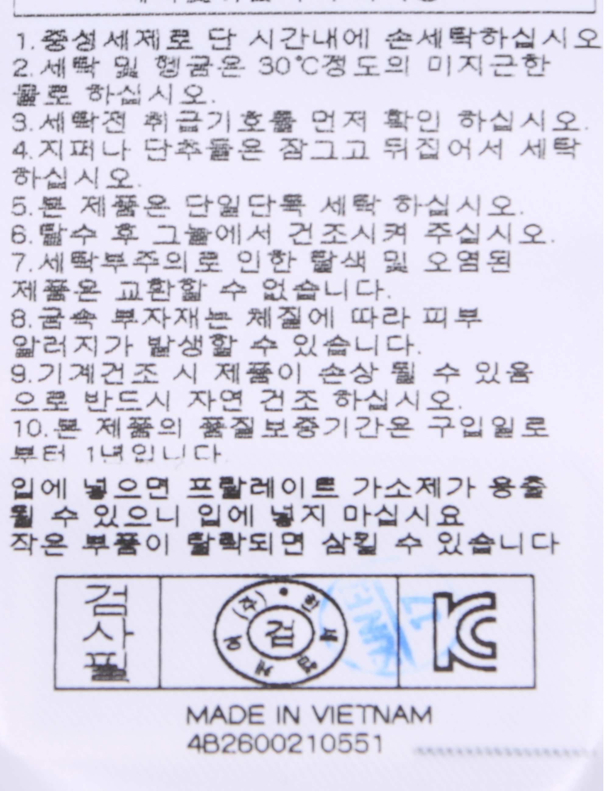 세탁방법 및 취급시 주의사항 본 제품은 손세탁 하십시오.(케어라벨참고)