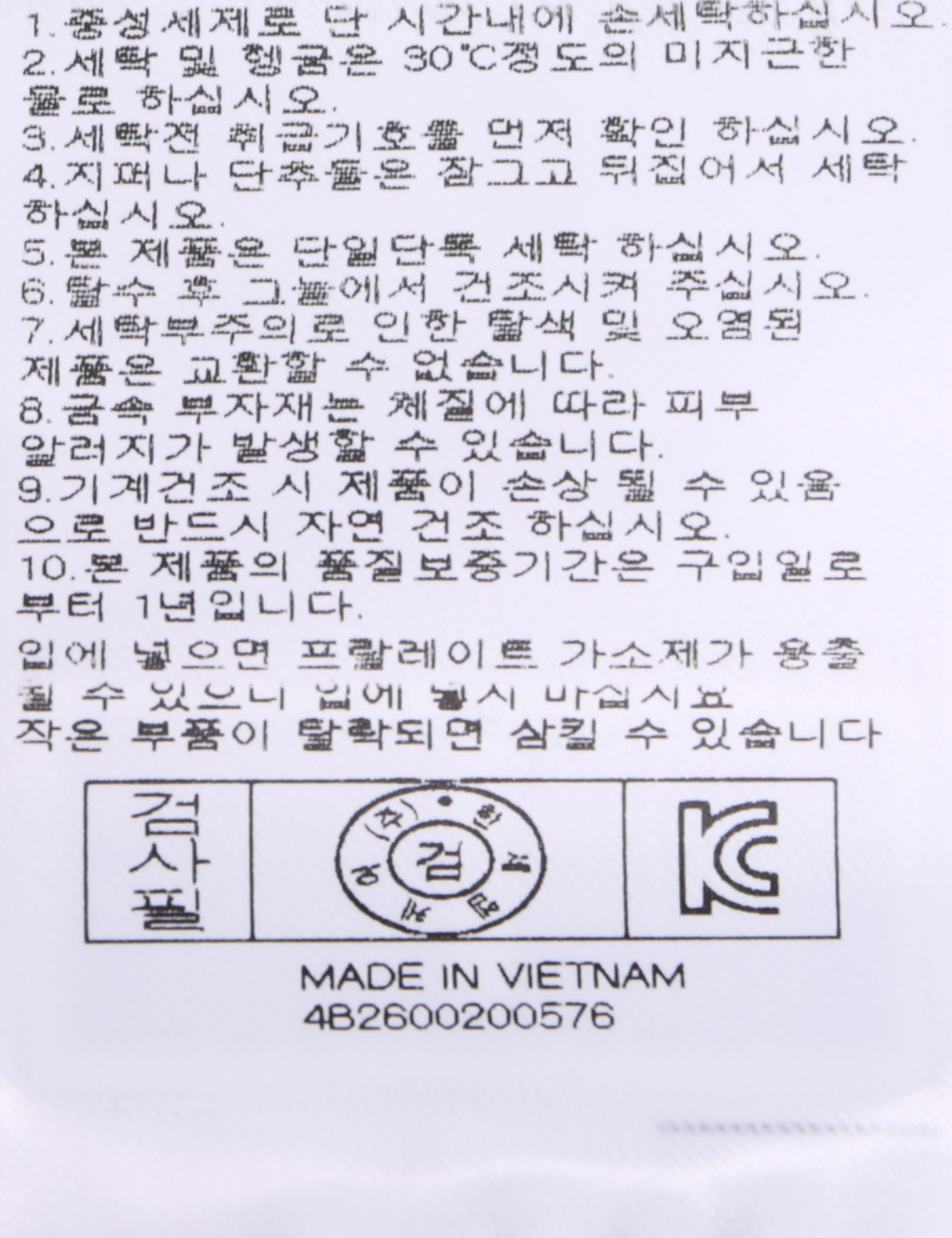| 세탁방법 및 취급시 주의사항 | 본 제품은 손세탁 하십시오.(케어라벨참고) |