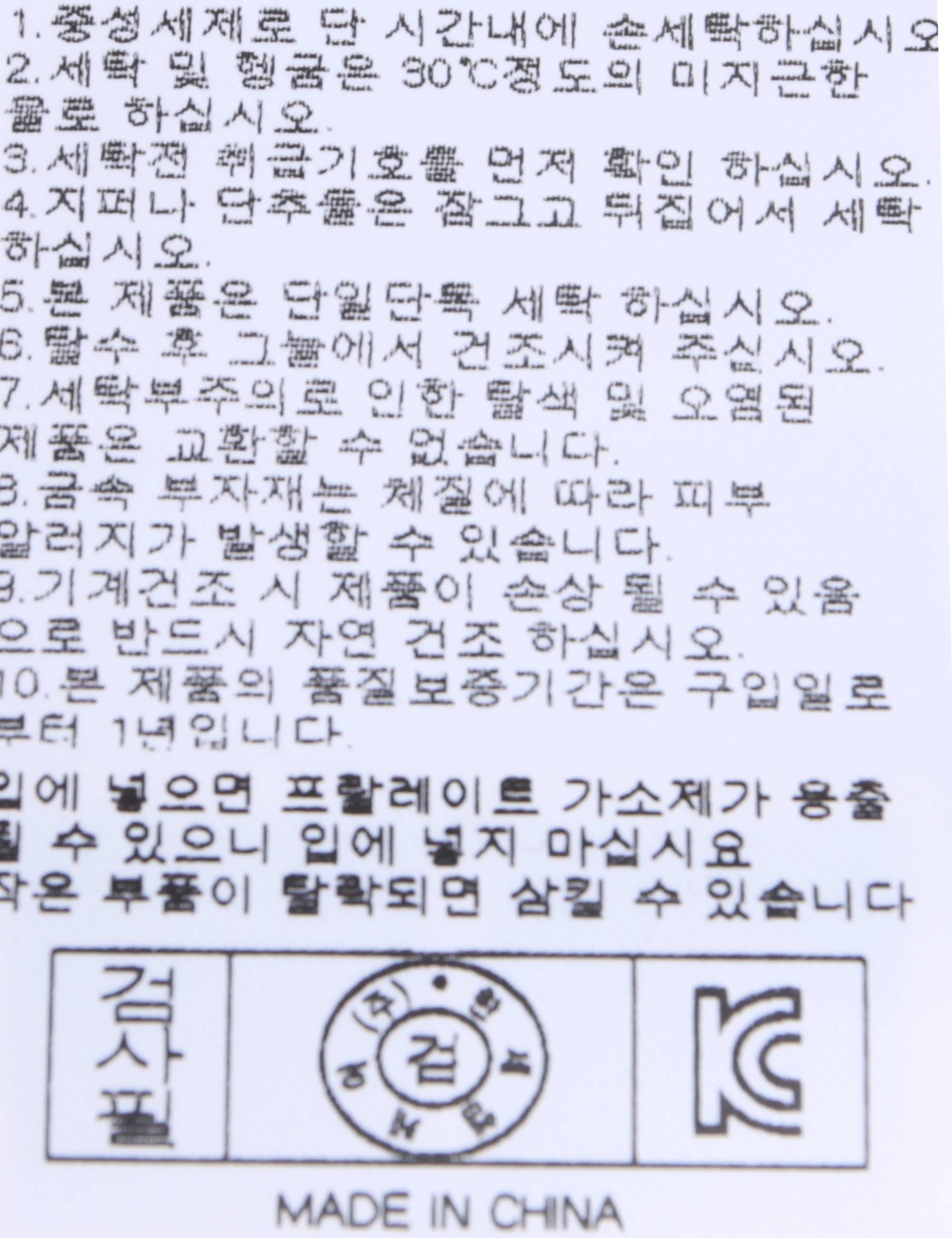 세탁방법 및 취급시 주의사항 본 제품은 손세탁 하십시오.(케어라벨참고)