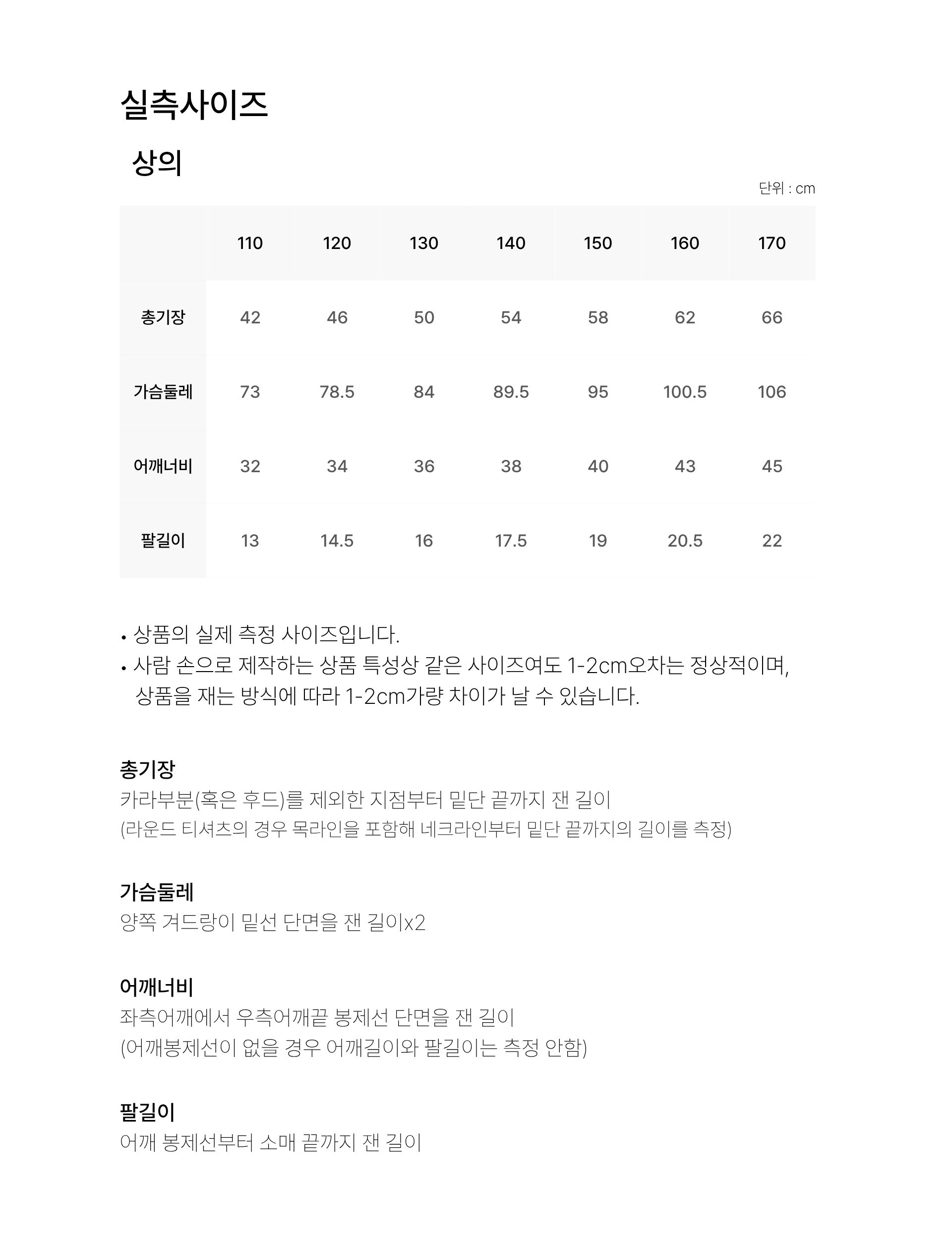 치수 130,140,150,160,170