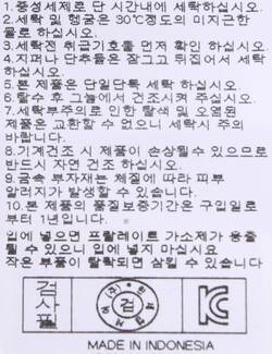 | 세탁방법 및 취급시 주의사항 | 중성세제로 단 시간내에 세탁하십시오.(케어라벨참고) |