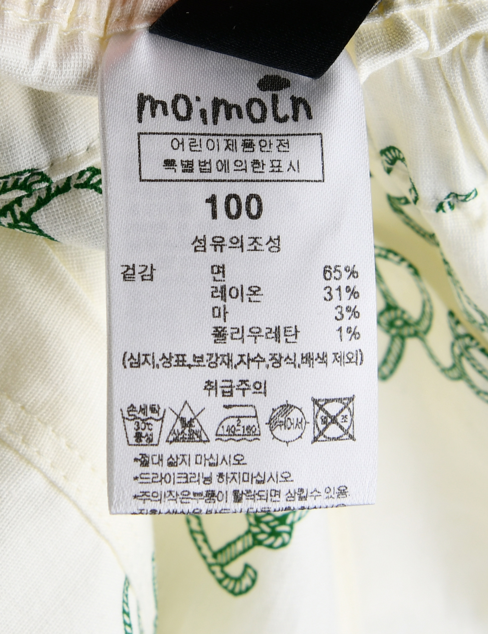 제품소재 (겉감)면65%,레이온31%,마3%,폴리우레탄1%