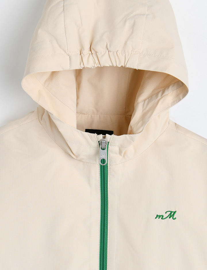 지퍼와 소매의 그린 컬러 배색이