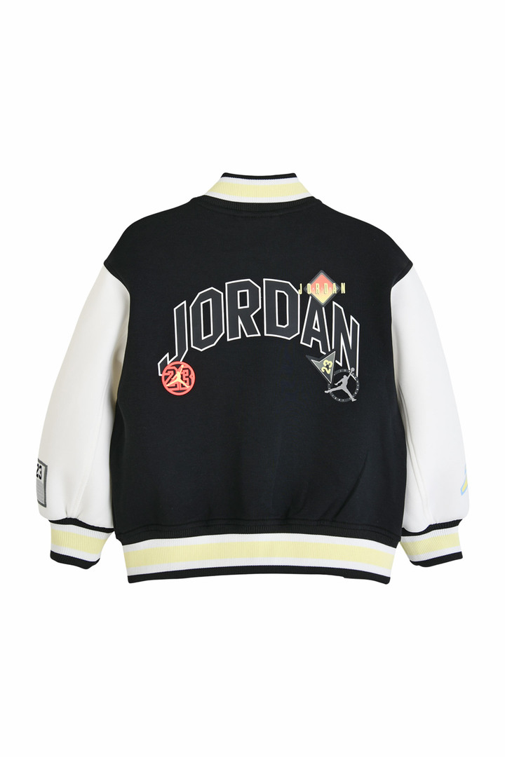 A. 조던키즈 토들러 폴리 혼방 소재 바시티 자켓으로 보머 무드의 아우터입니다