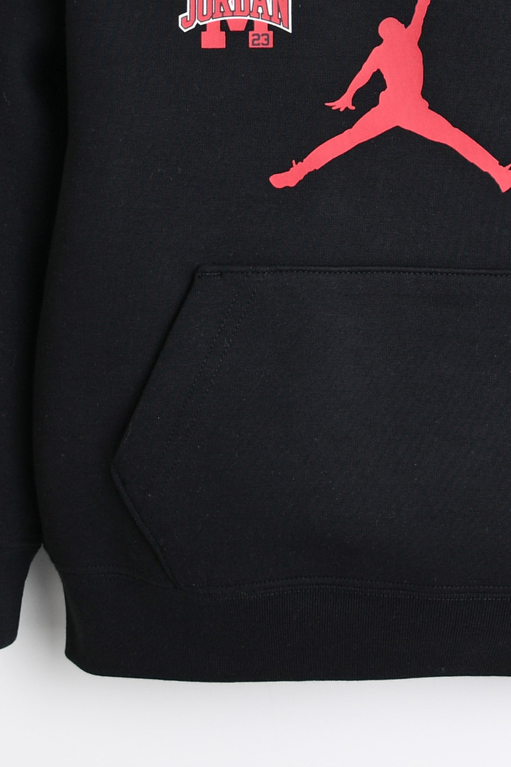 후디 가슴 중앙부 점프맨 로고와 뒷판의 레터링 로고로 포인트를 준 상품