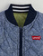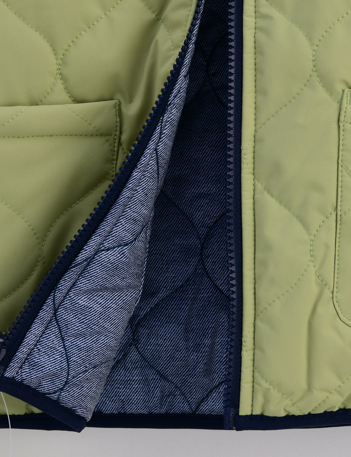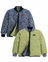 한쪽은 그린칼라, 다른면은 데님프린트로 되어 양면으로 착용이 가능한 퀼팅 보머 자켓