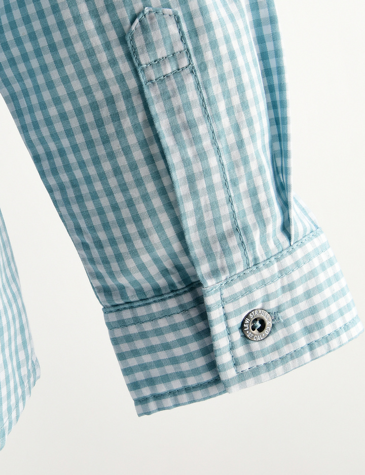 메탈 버튼의 있는 포플린소재의 체크 셔츠