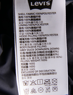 제품소재 (겉감/안감/후드충전재)폴리에스터100%(몸통/소매 충전재)오리솜털(다운함유량90%)