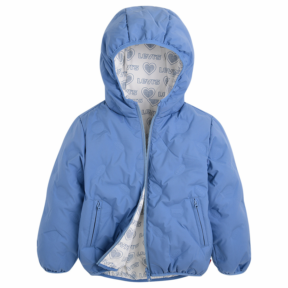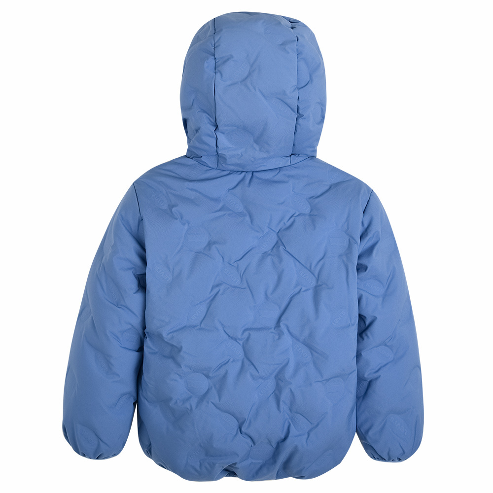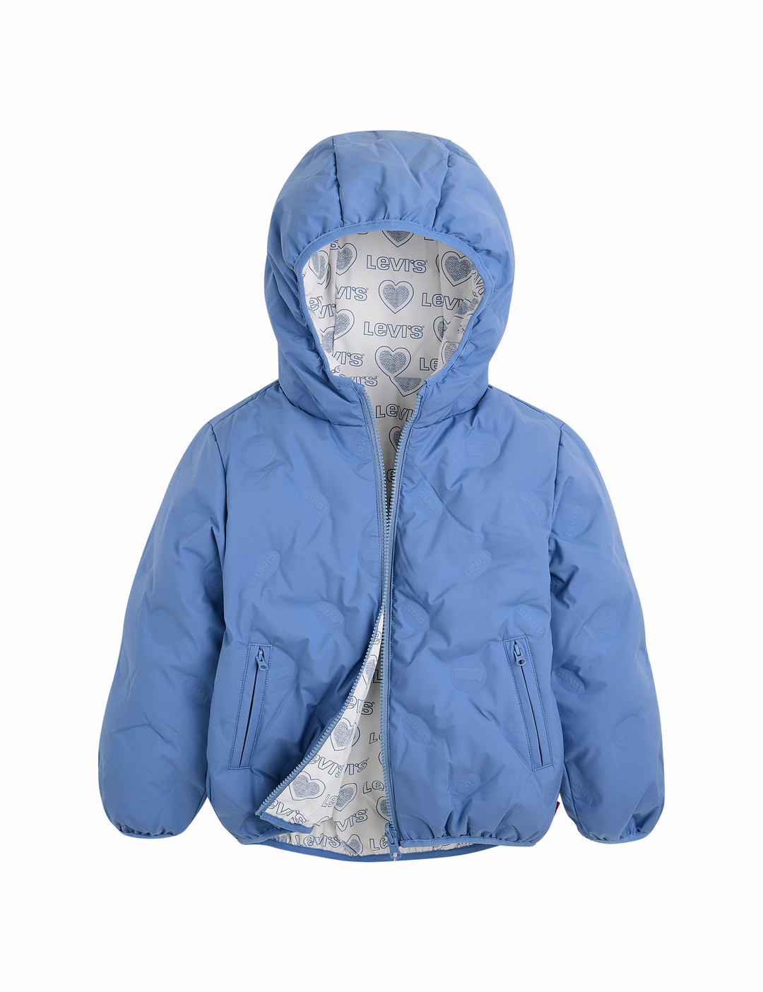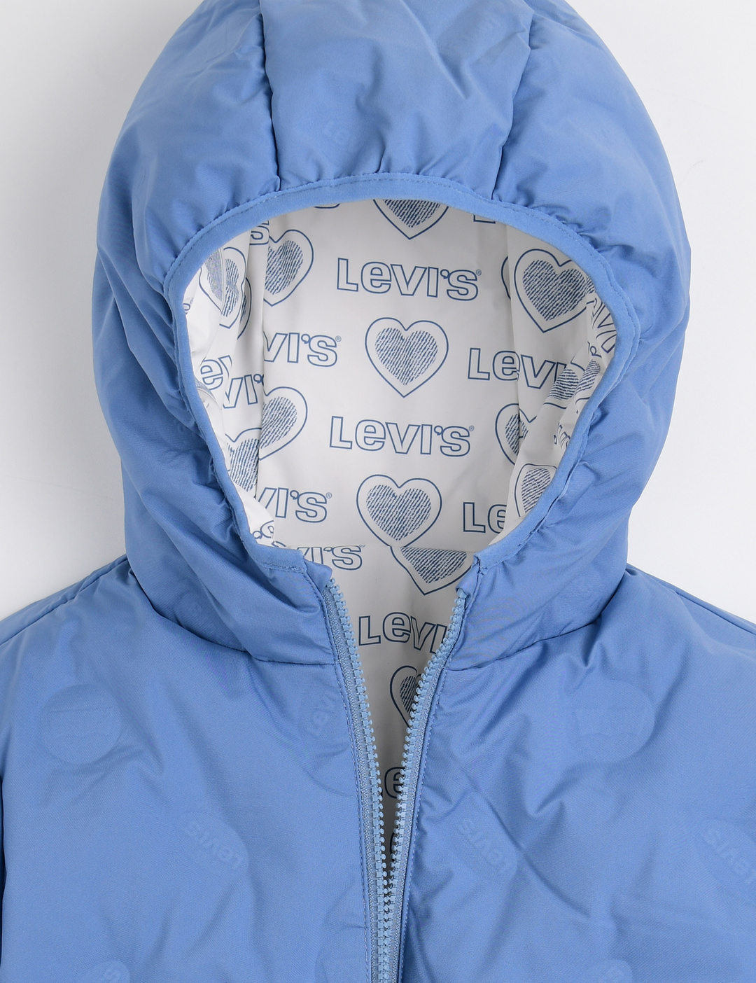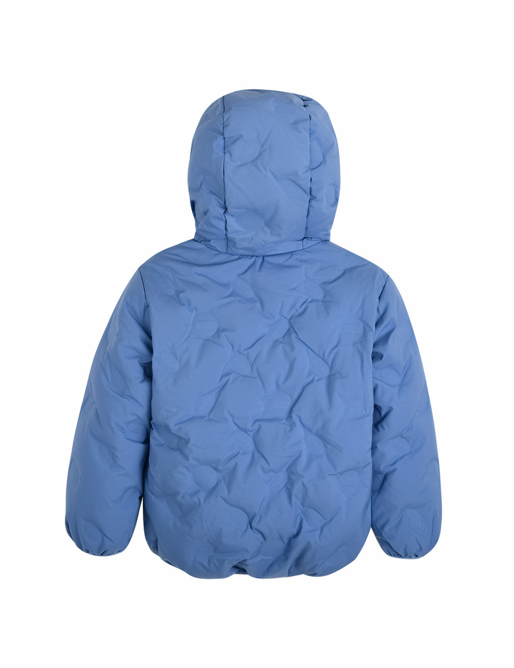 가벼운 다운 필링이 들어가 있으며, 하트프린트가 들어간 면과 솔리드 면 2가지로 착용가능한 리버서블 경량 다운자켓