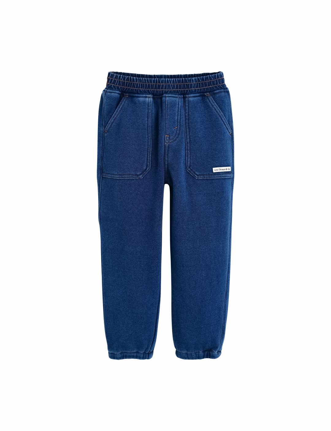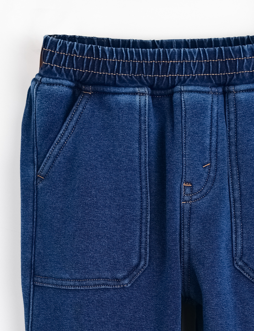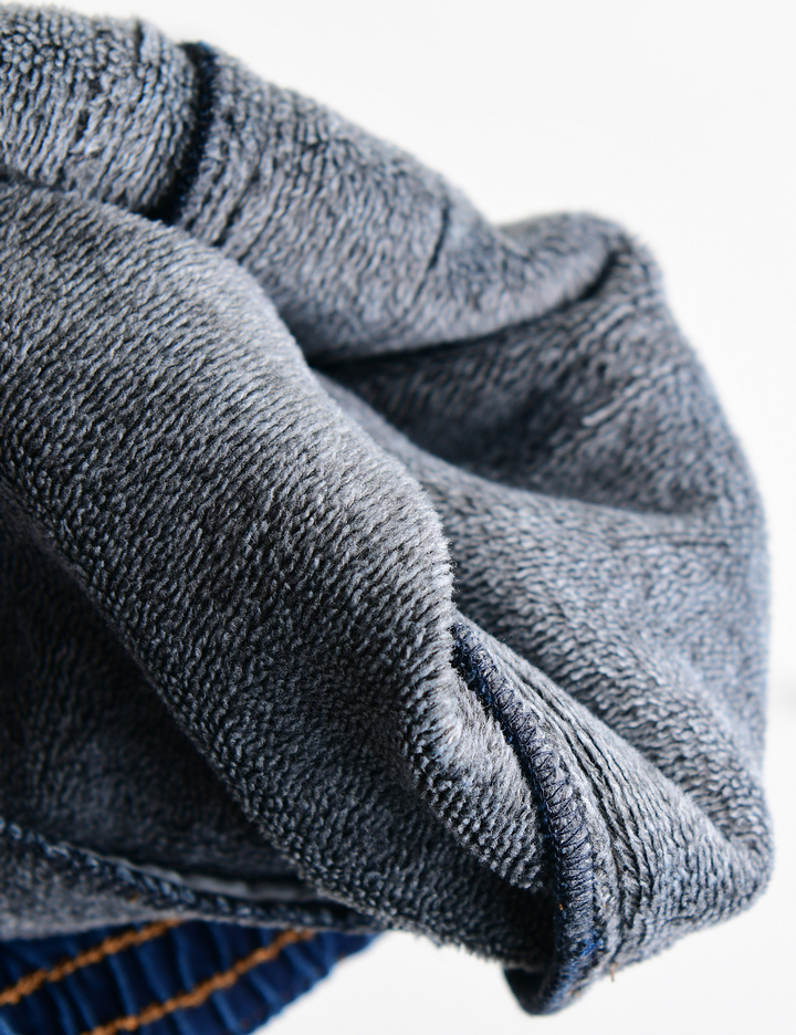 허리밴드가 잡아주어 활동성을 높이고, 기모 안감으로 보온성을 높인 신축성 높은 니트소재 데님조거