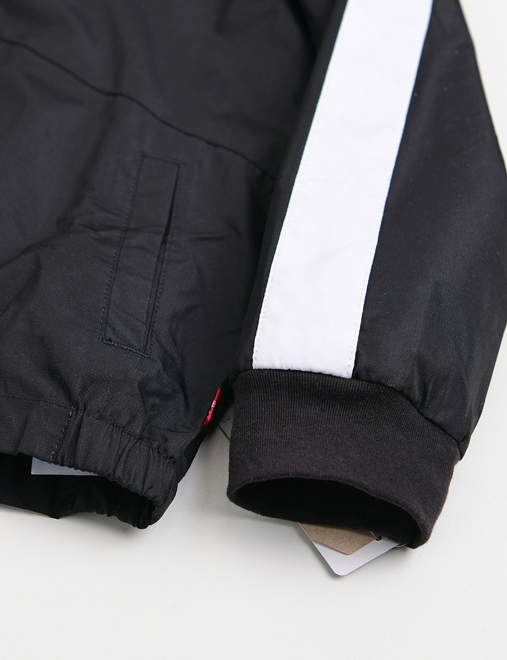 안감에 메쉬라인닝이 들어가 쾌적한 착용감을 주며, 지퍼와 소매 배색이 포인트인 솔리드칼라 윈드자켓