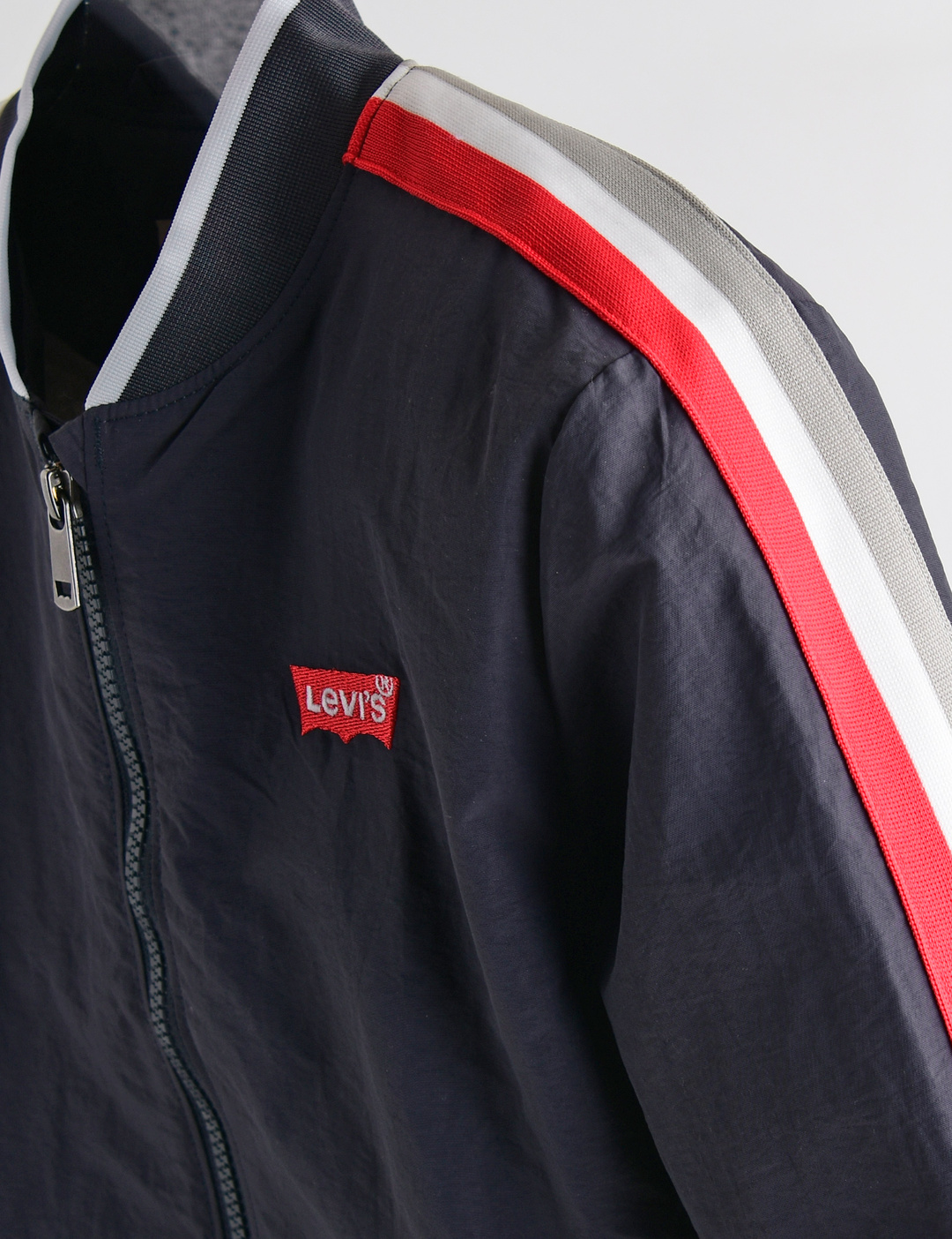 가슴에 배트윙 자수로고가 포인트이며, 드라이핏 메쉬 안감으로 쾌적한 착용감의 보머자켓.