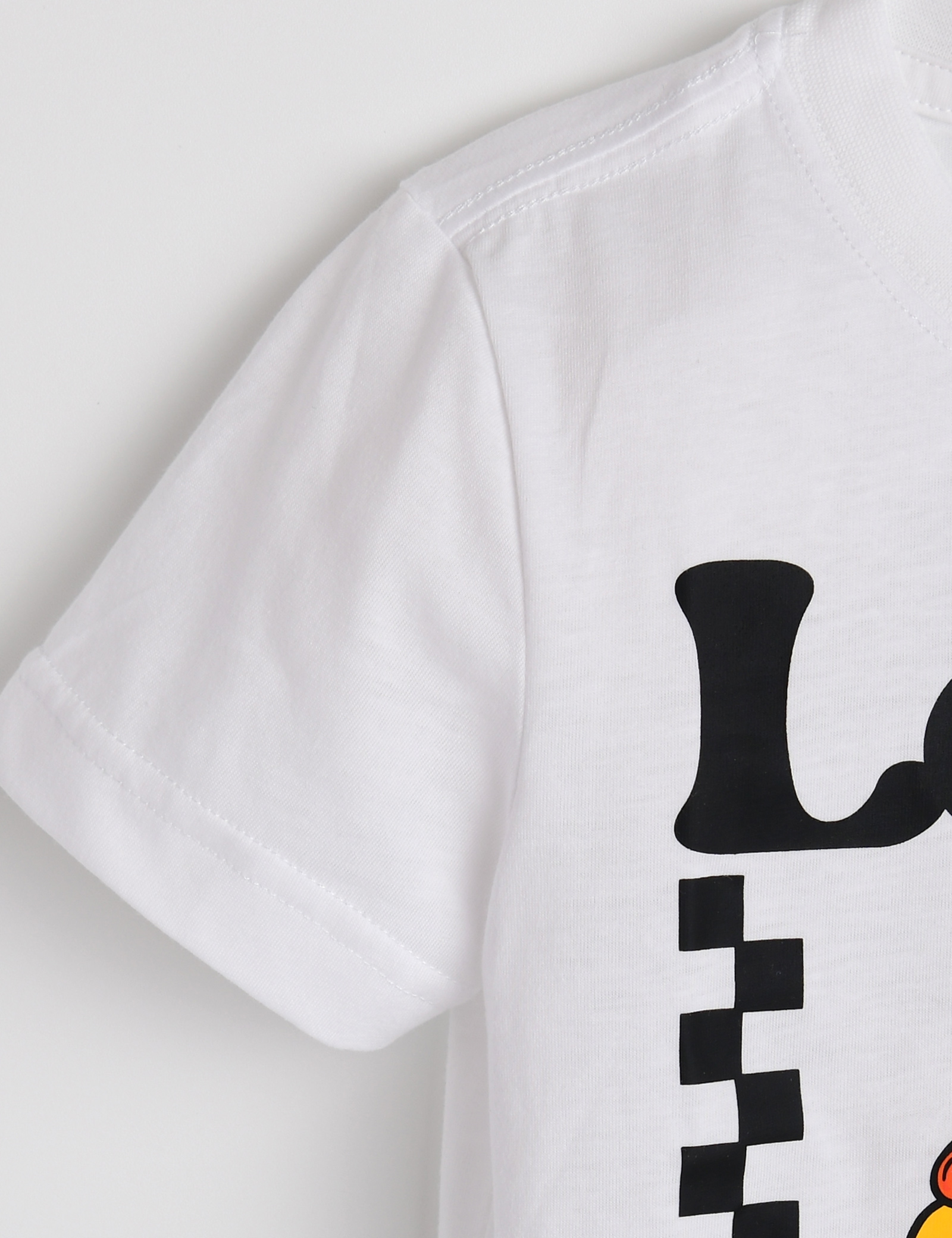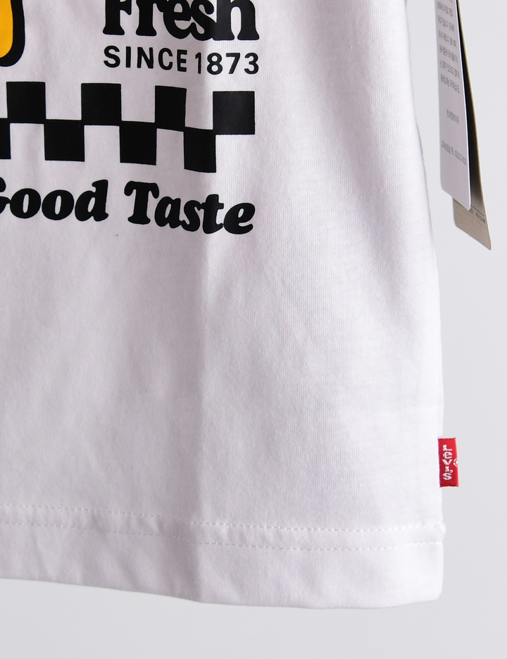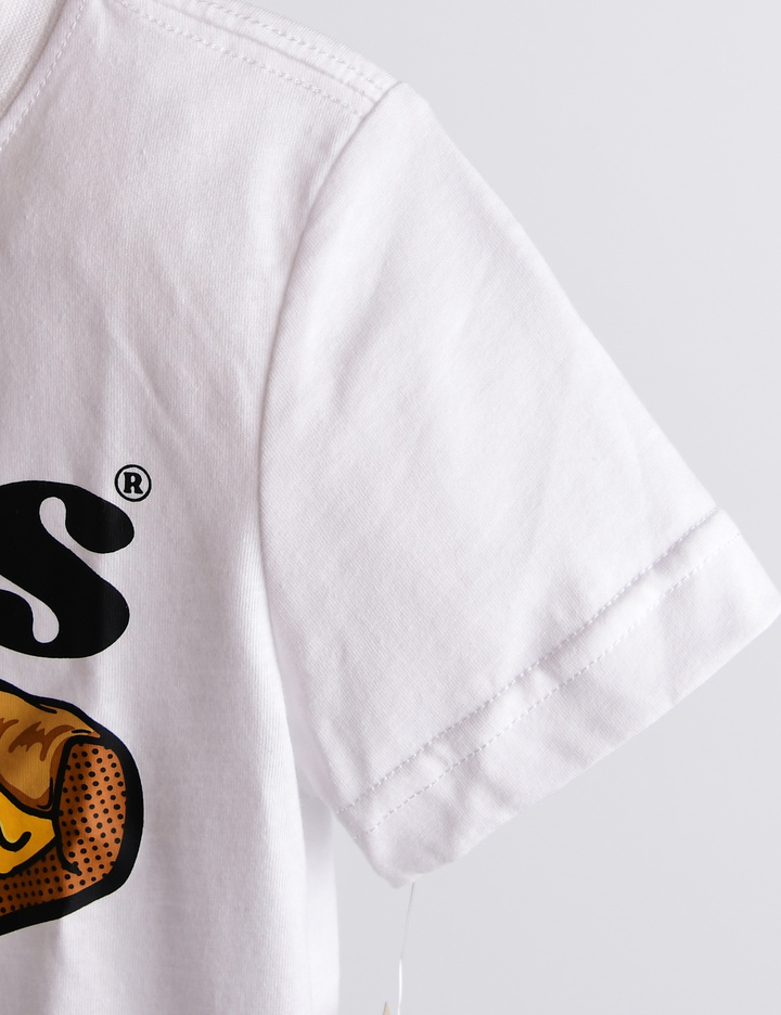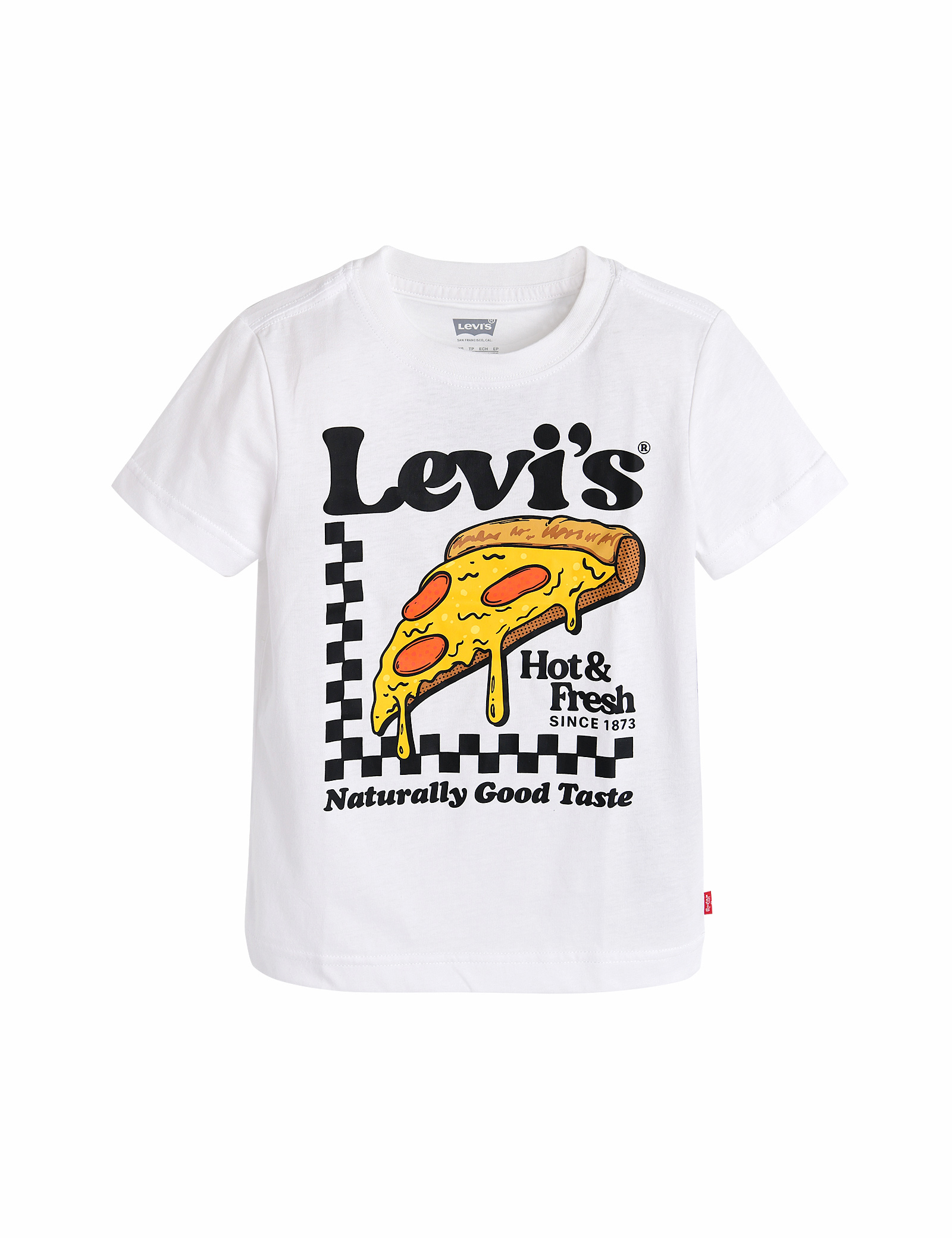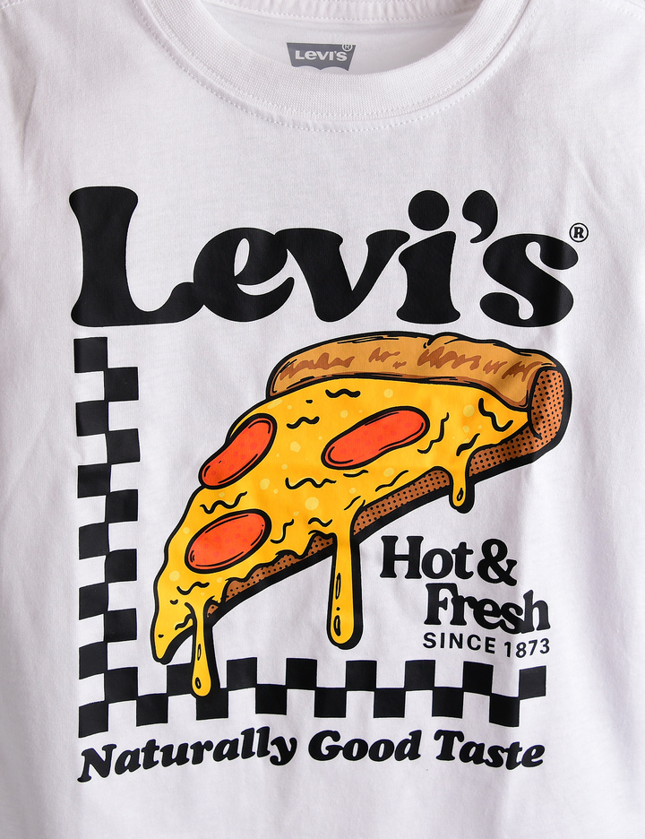 레트로한 감성의 피자 그래픽이전면에 프린트된 반팔 티셔츠