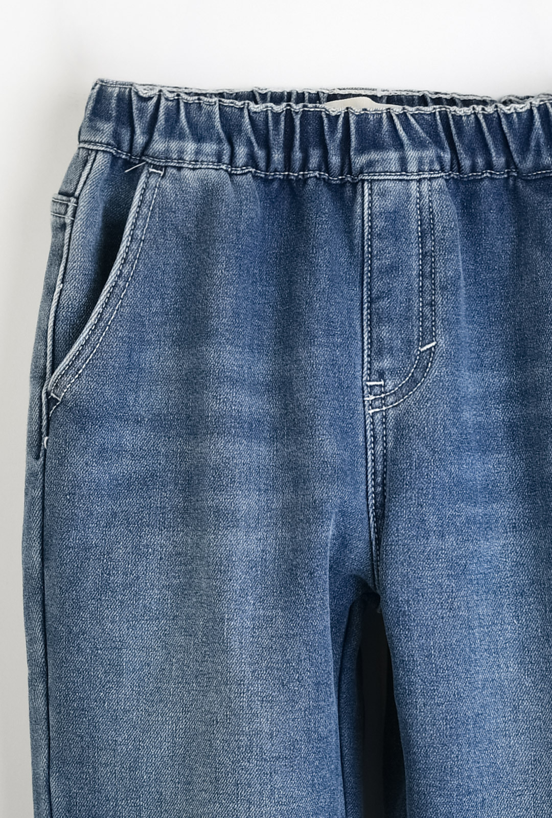 뛰어난 신축성과 내구성을 자랑하는 플리스 데님 조거팬츠