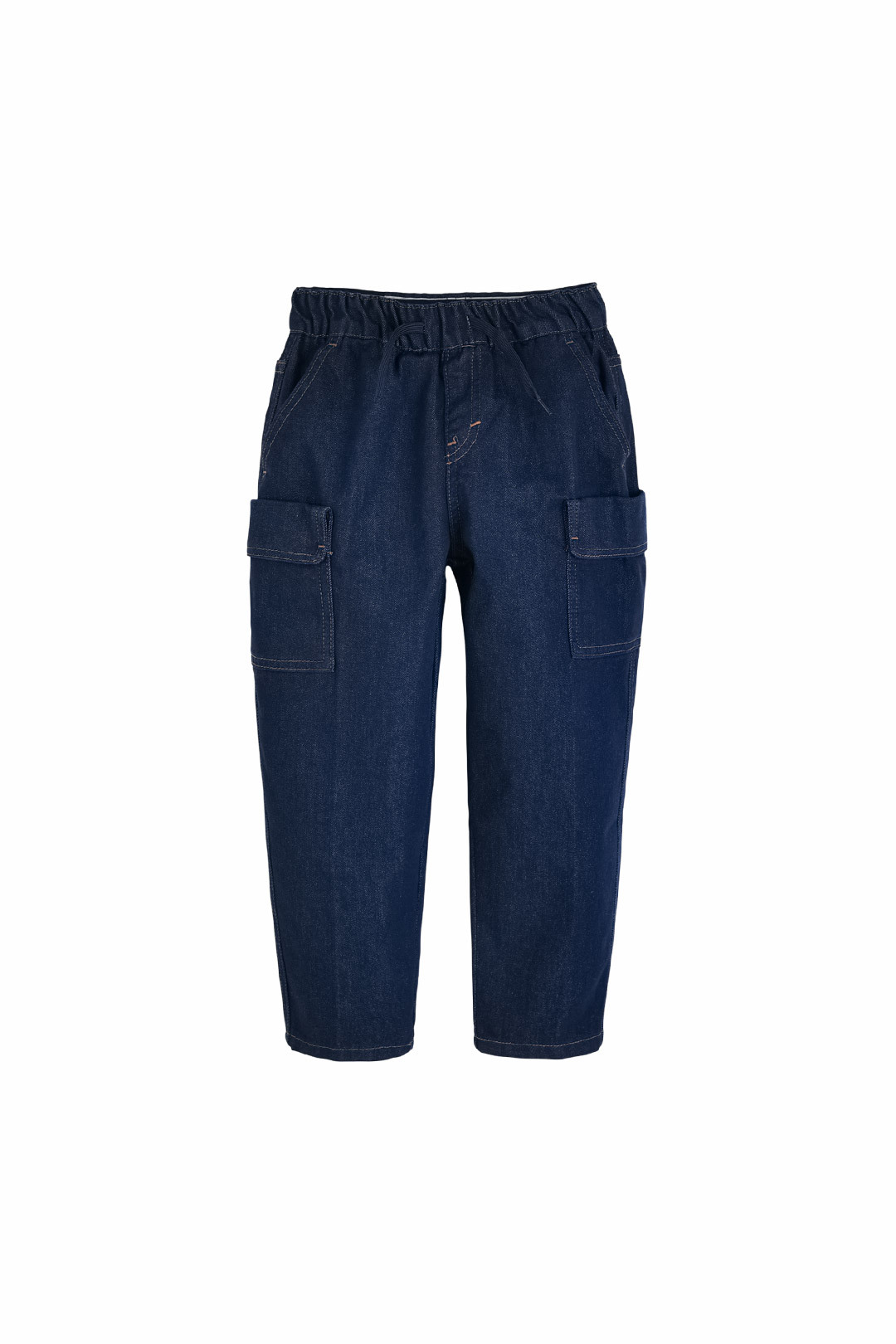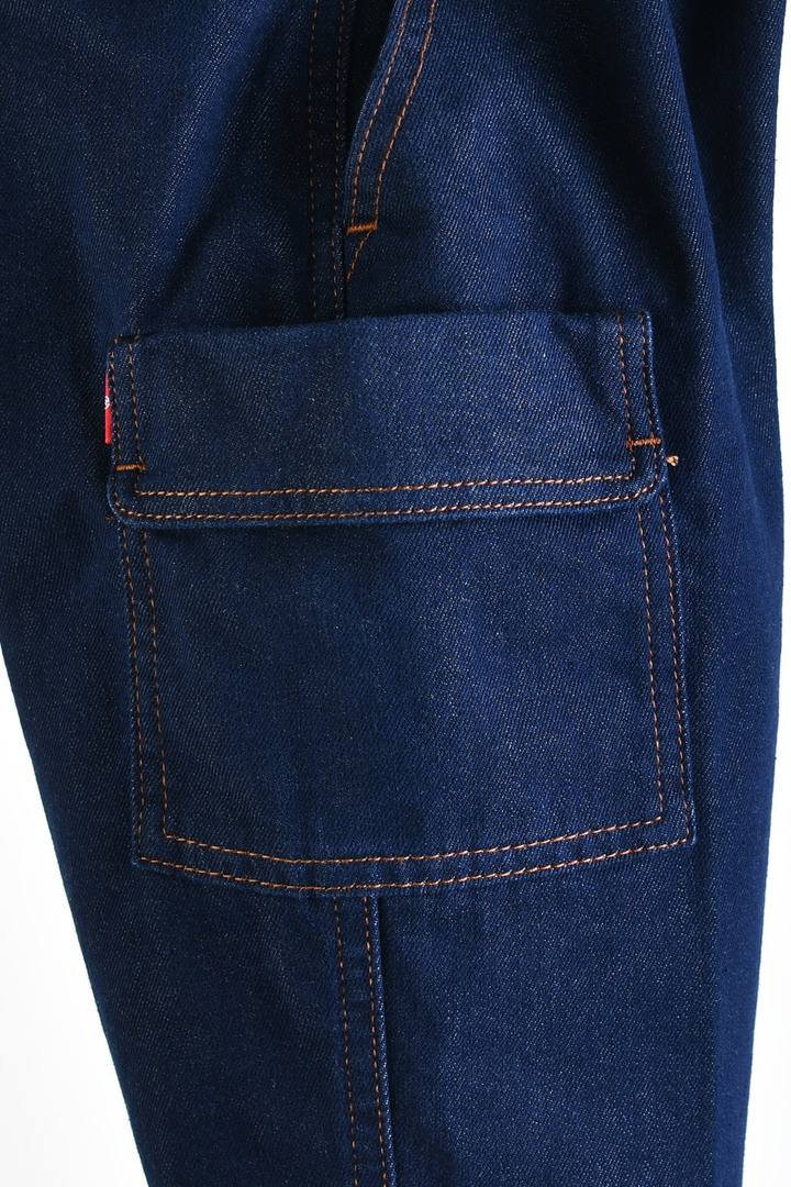 카고 디테일과 밴딩 허리를 더한 데님 팬츠