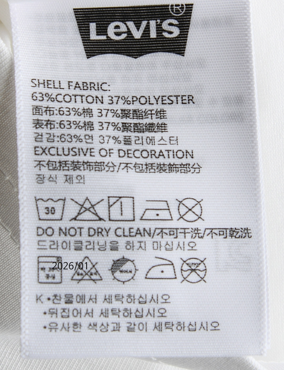 제품소재 (겉감)면63%,폴리에스터37%