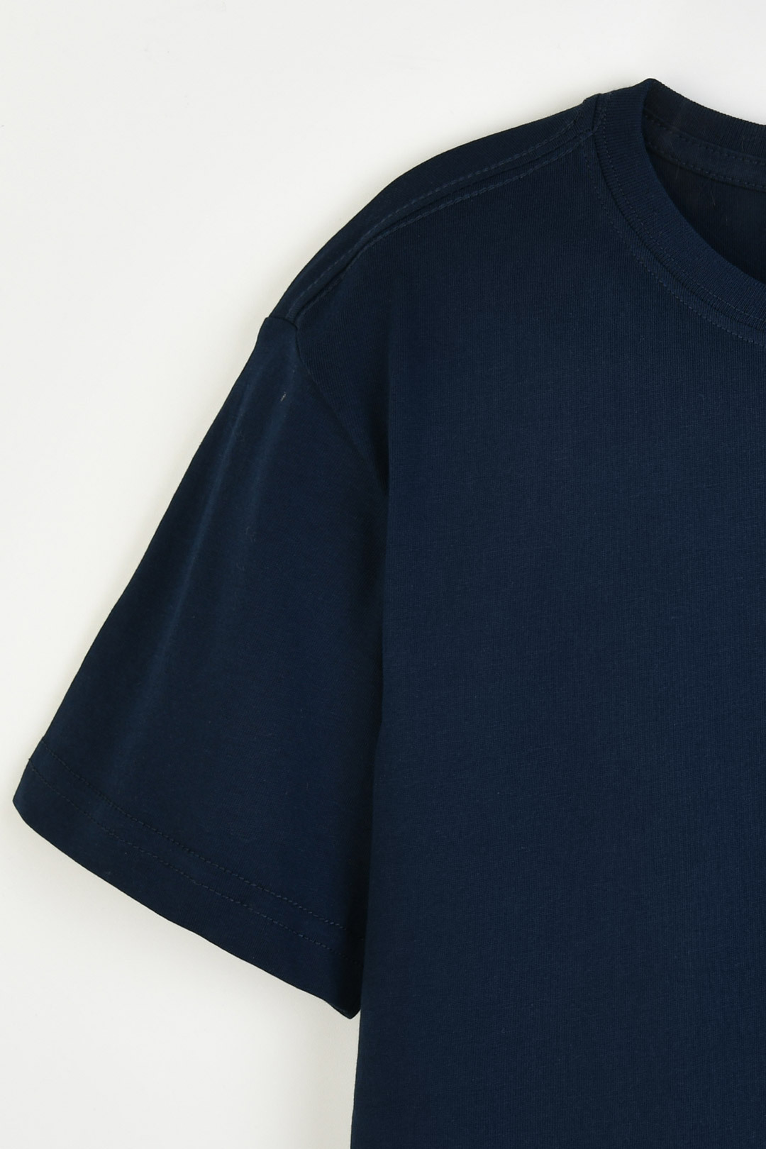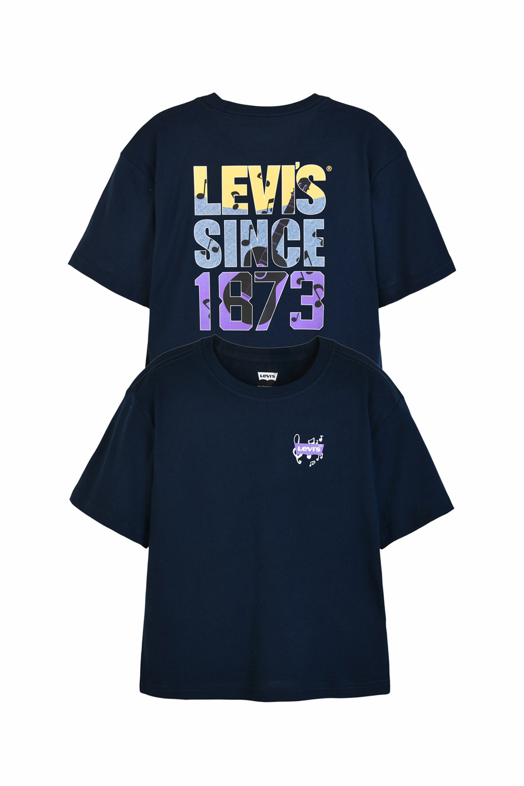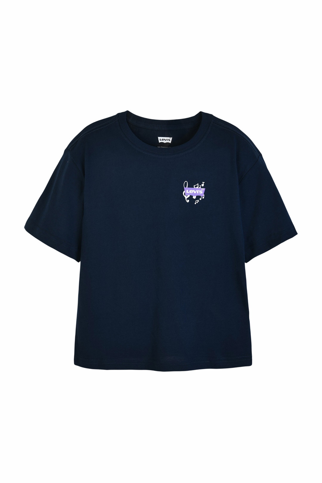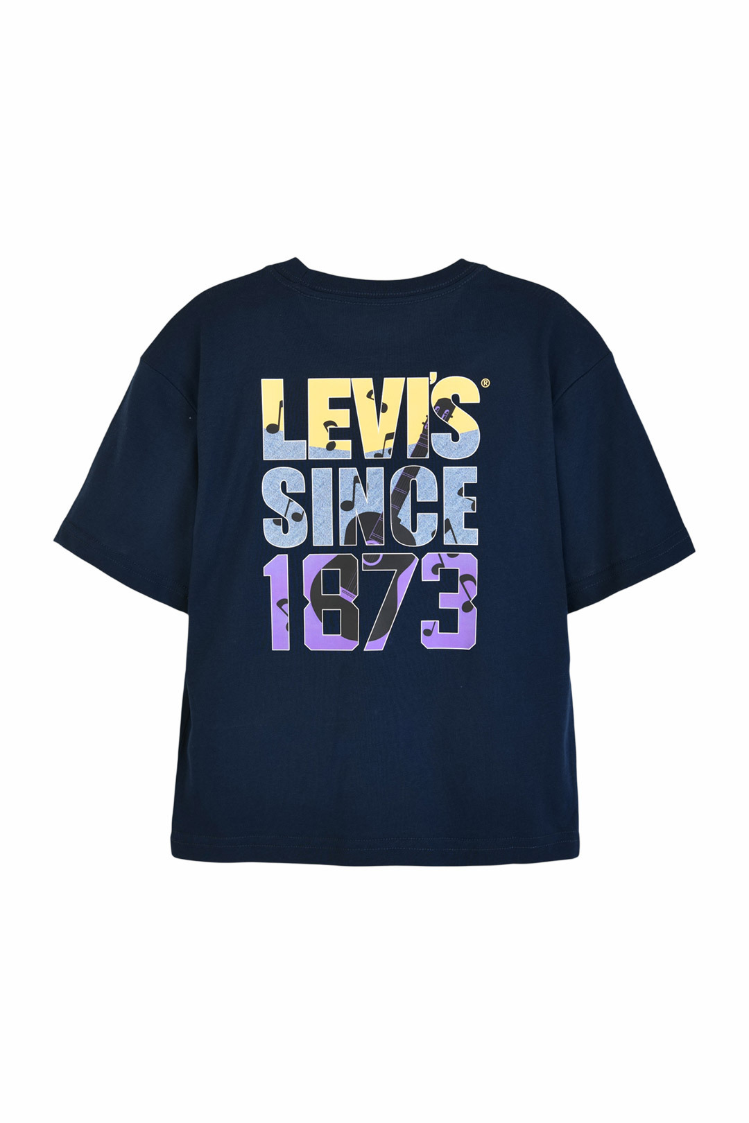 여름 분위기가 느껴지는 그래픽 티셔츠 후면 어쿠스틱 기타 프린트가 시선을 끄는 디자인 드롭숄더와 루즈핏이 편안한 무드를 더해줌 네이비 컬러로 데일리하게 활용하기 좋음