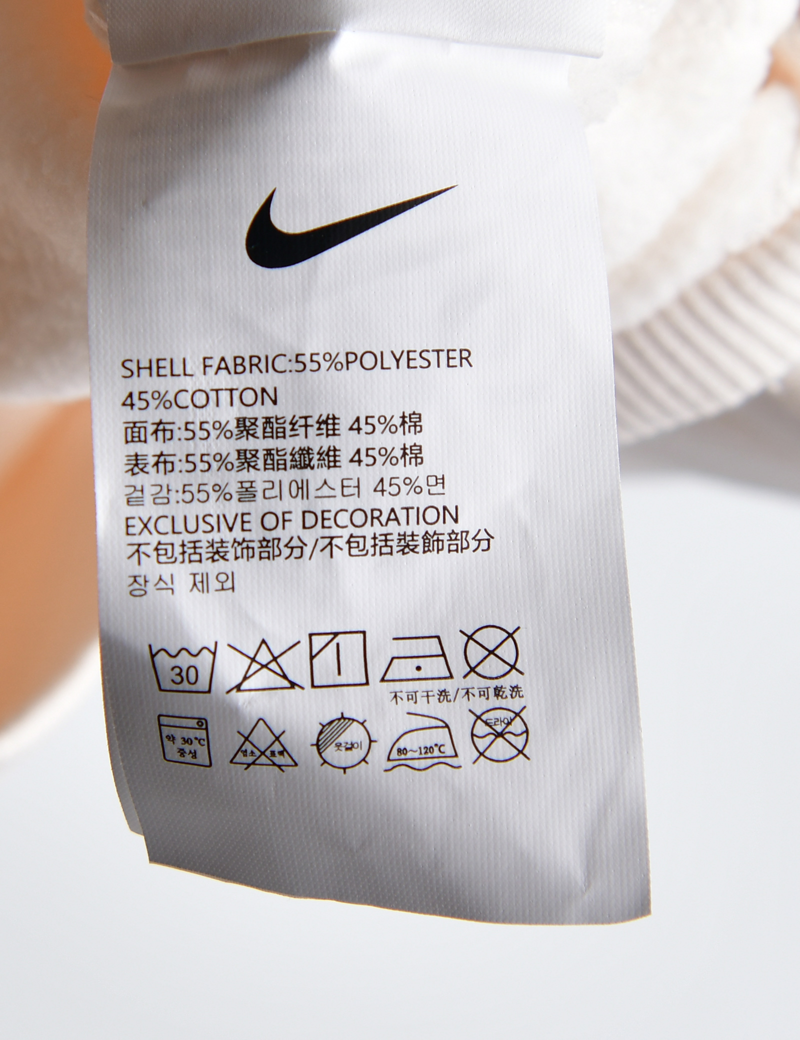 제품소재 (겉감)폴리에스터55%,면45%