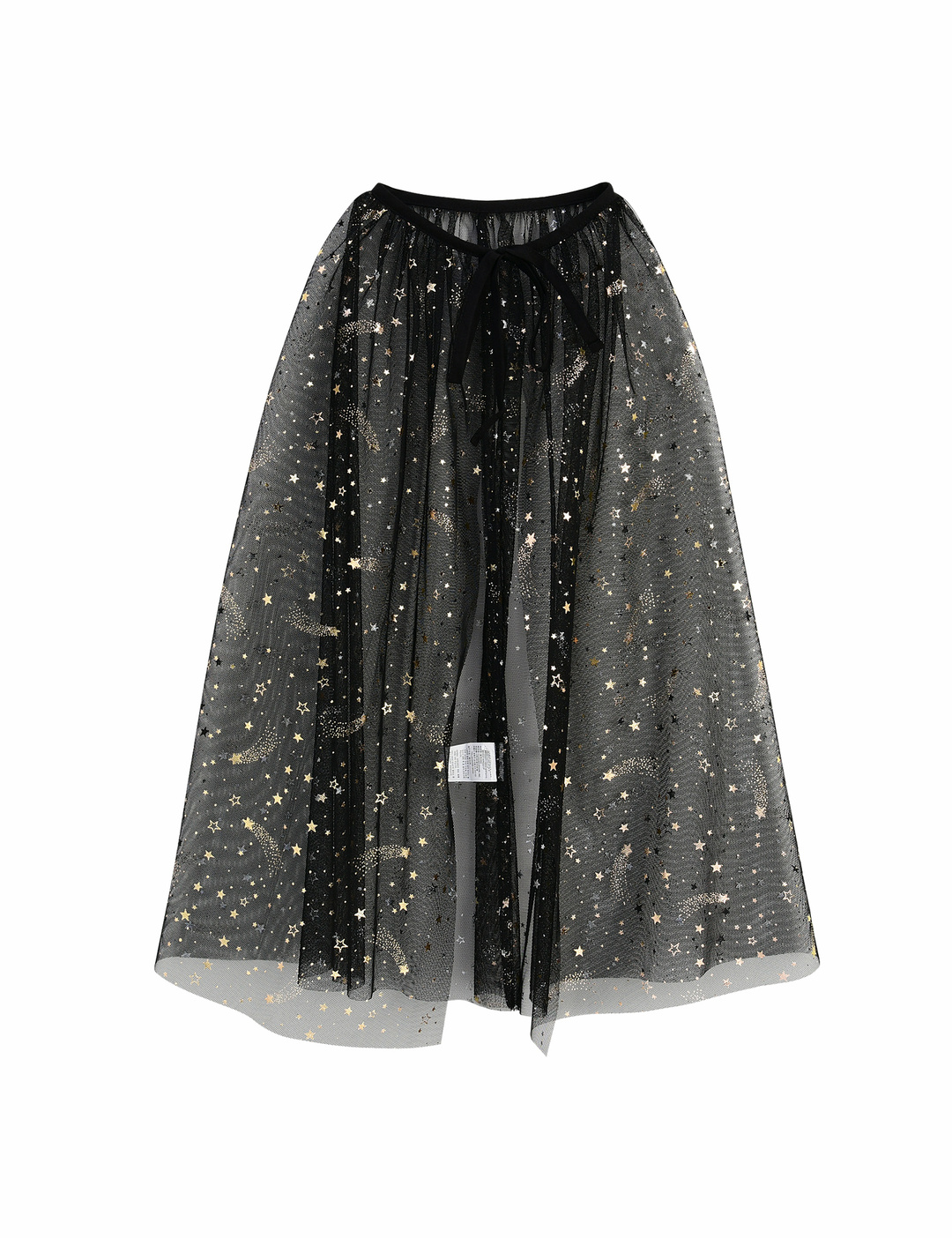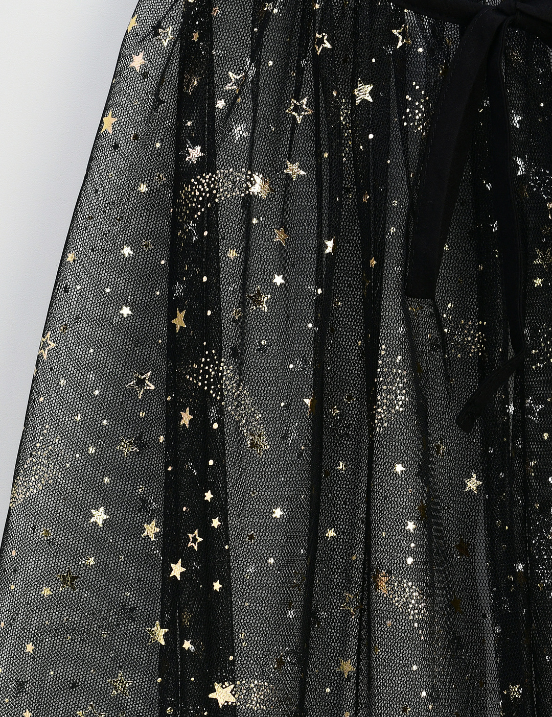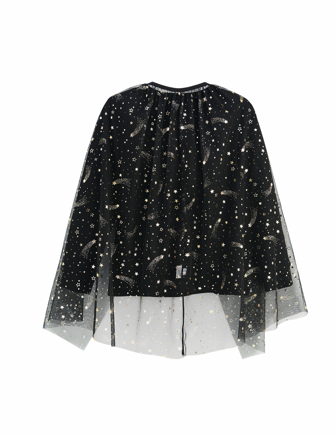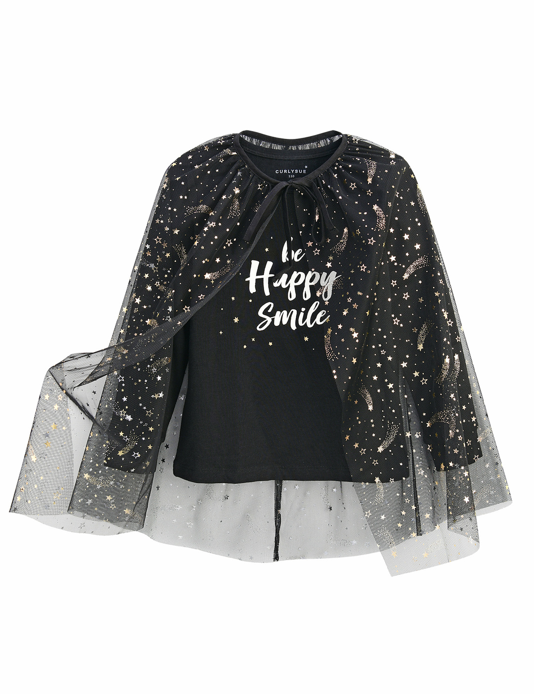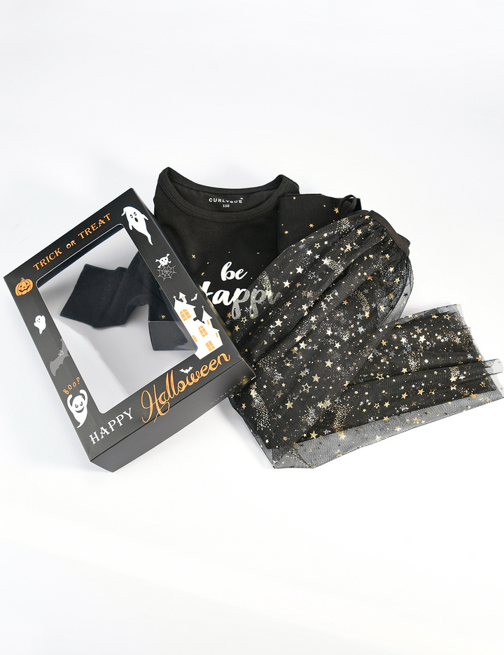 시크하고 모던한 블랙 컬러에 골드 펄 나염으로 고급스러움을 더했습니다. 반짝거리는 별호일 나염이 찍힌 망토는 아이들의 호기심과 흥미를 자극합니다. 할로윈 박스 패키지로 구성되어 할로윈 홈 파티에 활용하기 좋습니다.